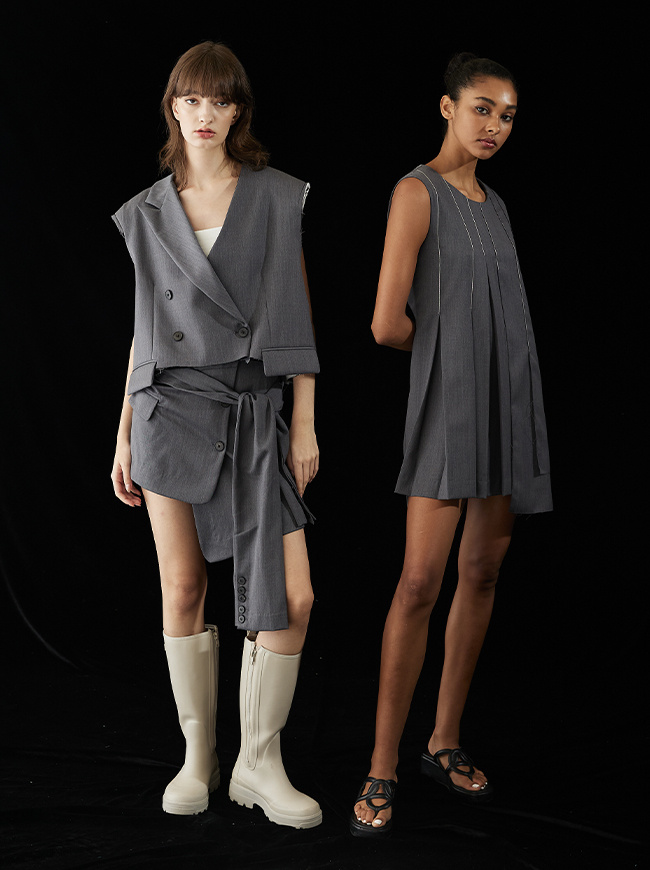 - 골반을 감싸주는 슬리브 디테일을 다양한 스타일로 묶어 자연스럽게 연출가능