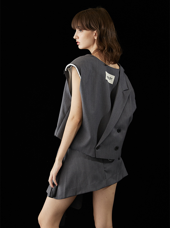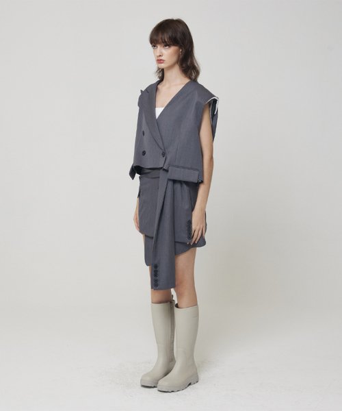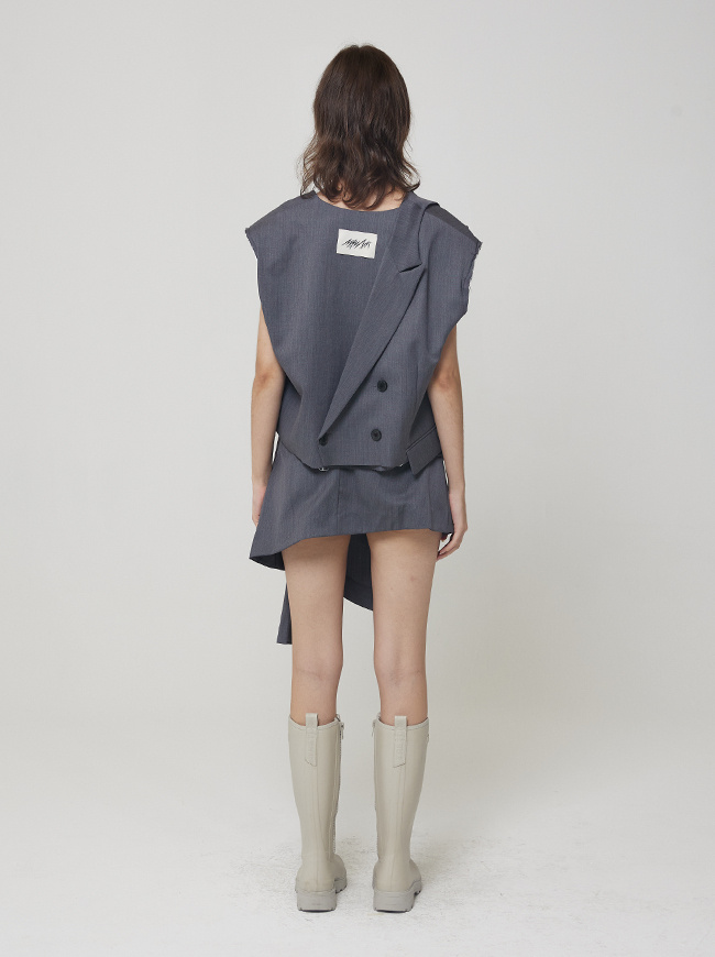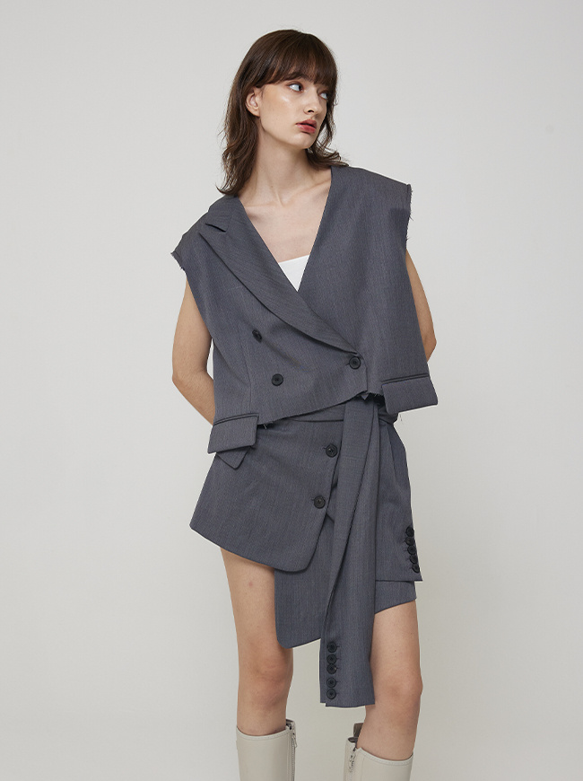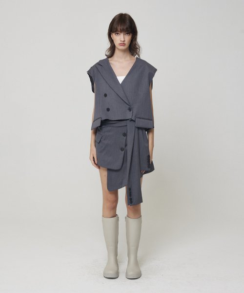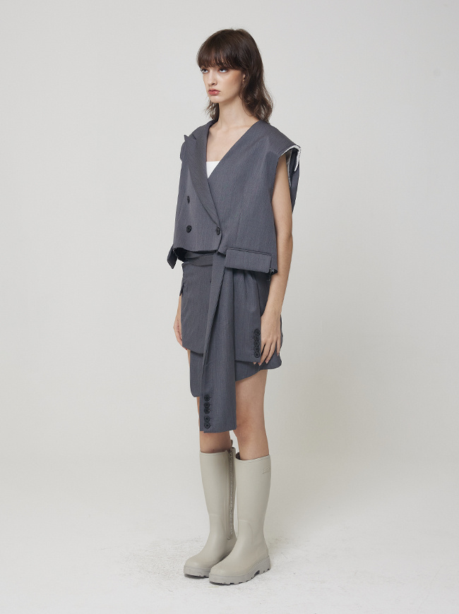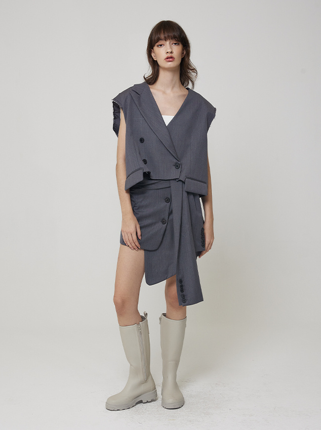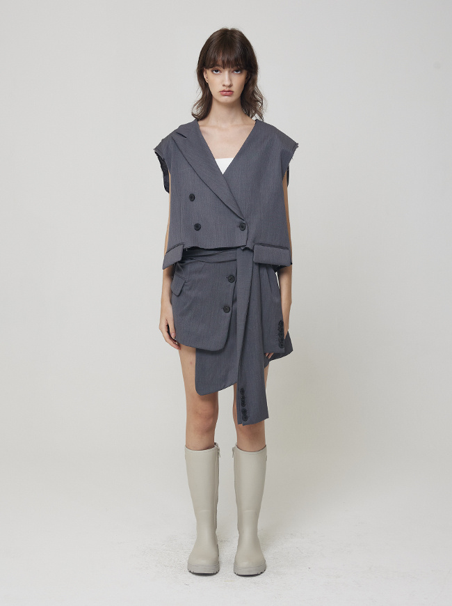 - 허리라인에서 크롭된 자켓 디자인의 스커트 커버업