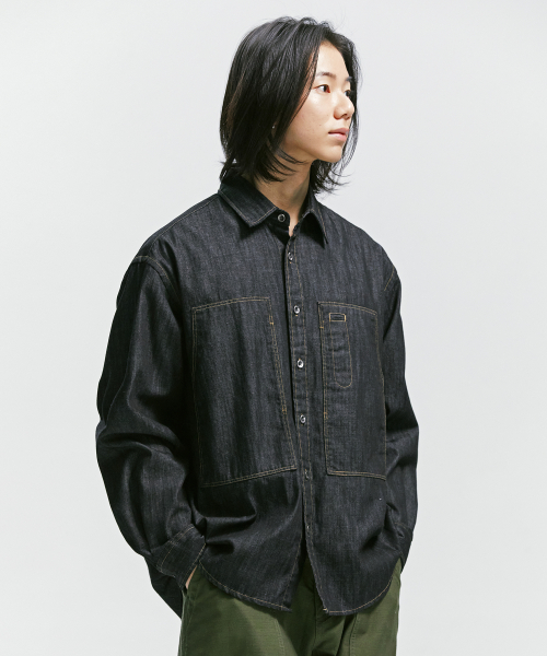DENIM CARPENTER POCKET WORK SHIRT _ BLACK