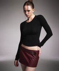 우먼즈 오픈 백 슬림 티셔츠 [블랙]