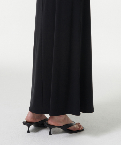 우먼즈 소프트 저지 플레어 롱 드레스 [블랙]