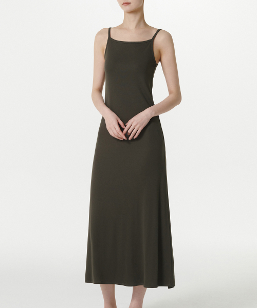우먼즈 소프트 저지 롱 드레스 [다크 올리브]