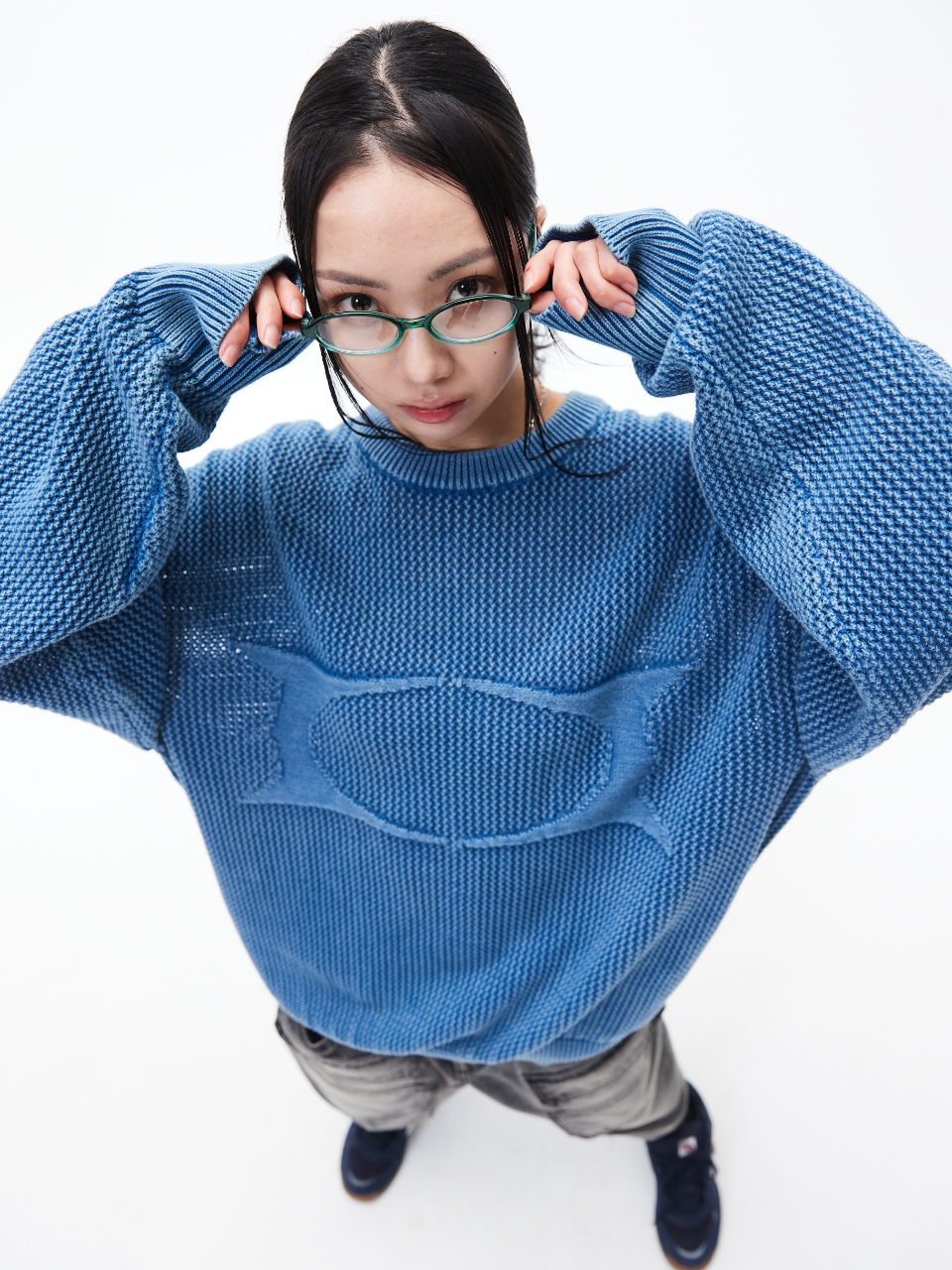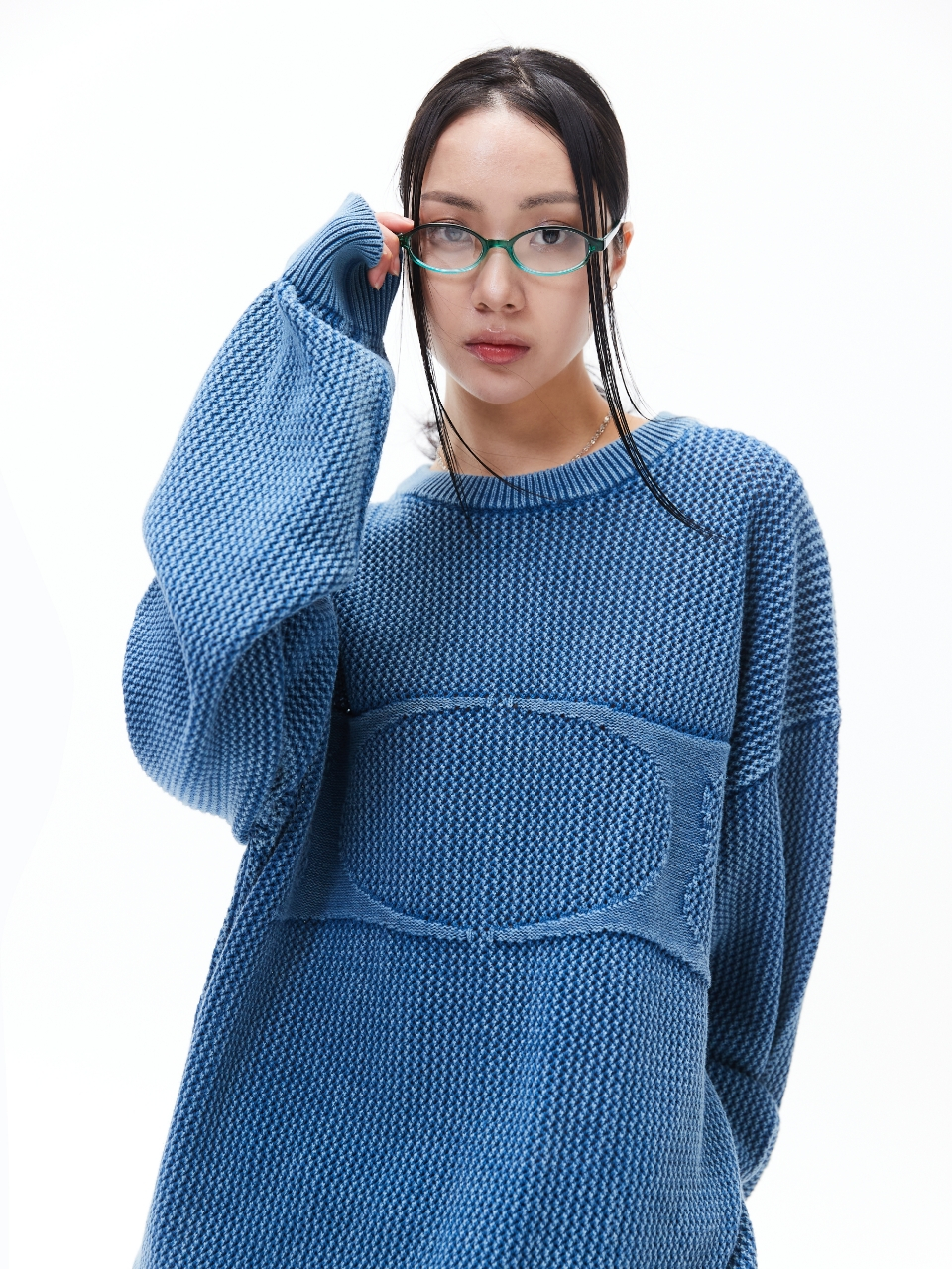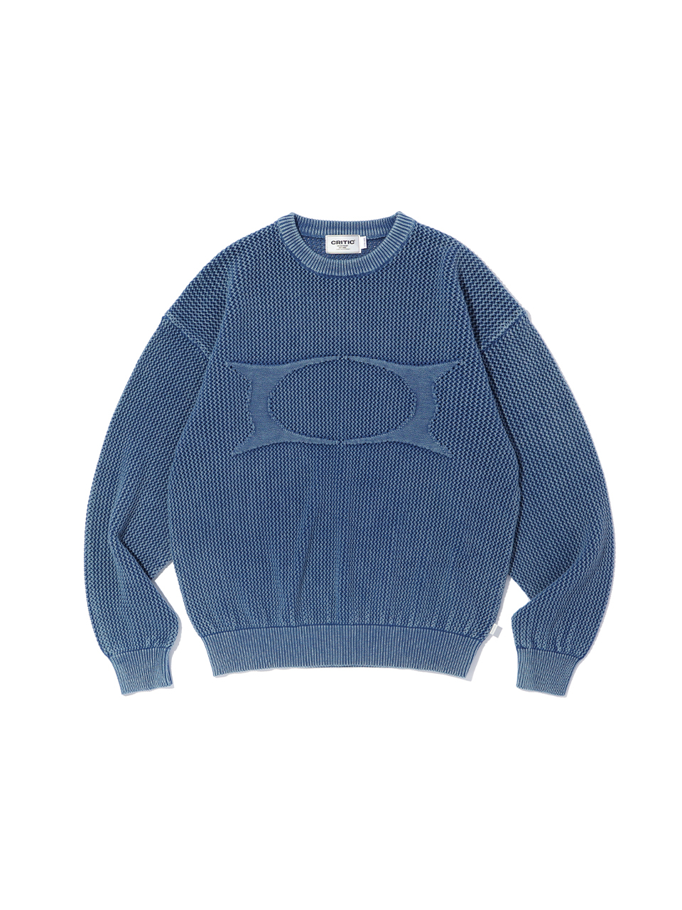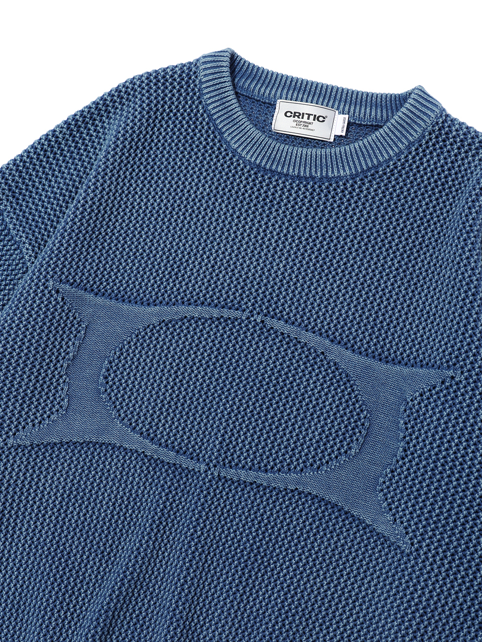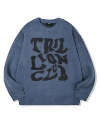헤어리 그래픽 로고 오버핏 자카드 니트 (BLUE)
