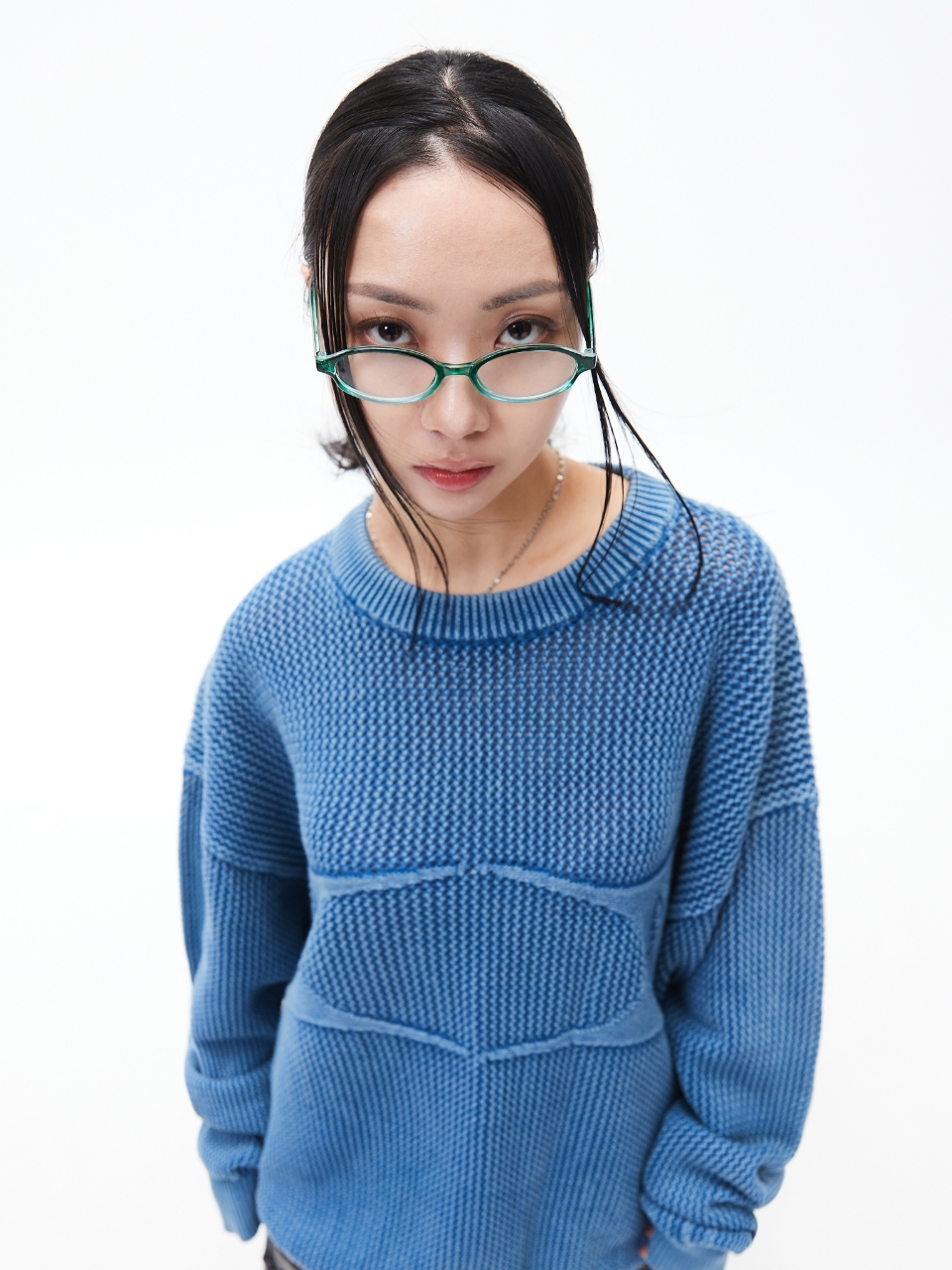 WORMHOLE LOGO NATURAL DYEING MESH KNIT BLUE