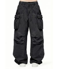더블 니 파라슈트 카고 팬츠_블랙