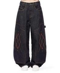 아가일 커브드 데님 팬츠_인디고