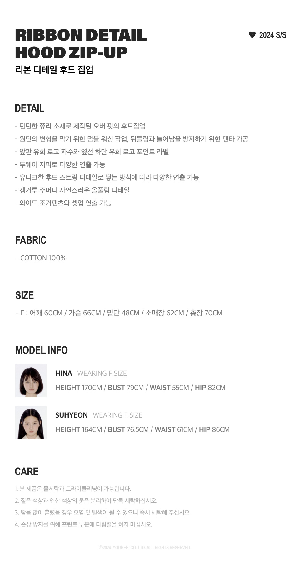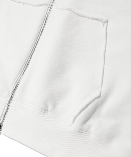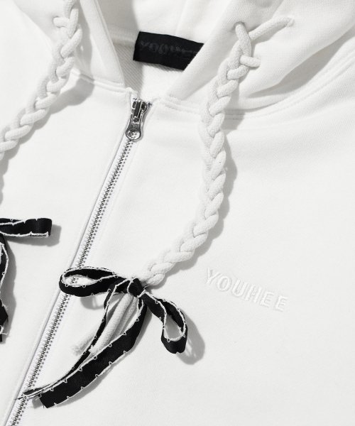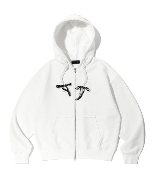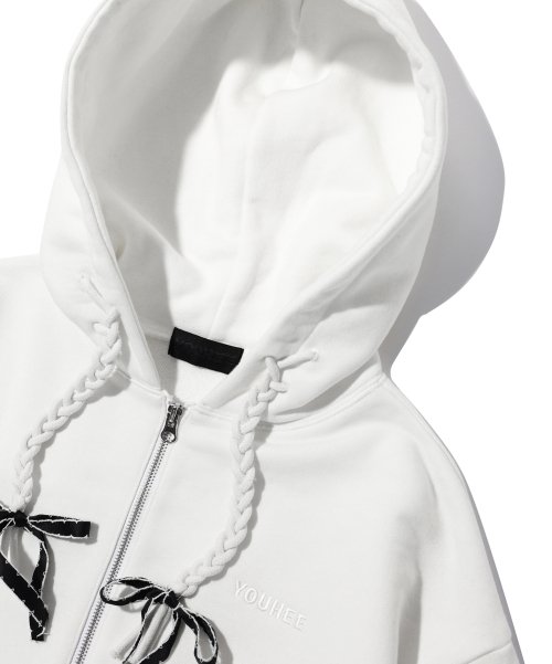 RIBBON DETAIL HOOD ZIP-UP WHITE