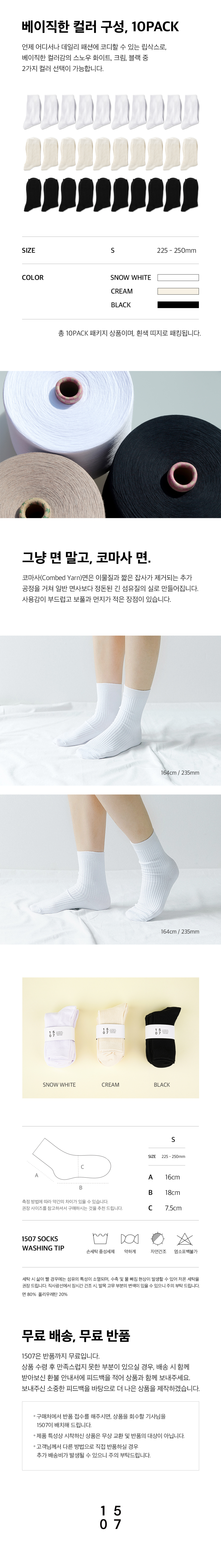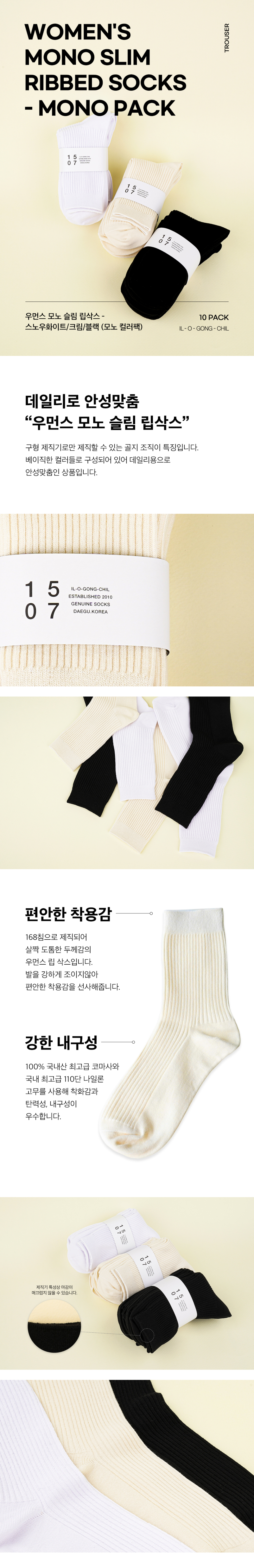 [10PACK] 1507 우먼스 모노 슬림 립삭스 - 스노우화이트/크림/블랙(모노 컬러팩)