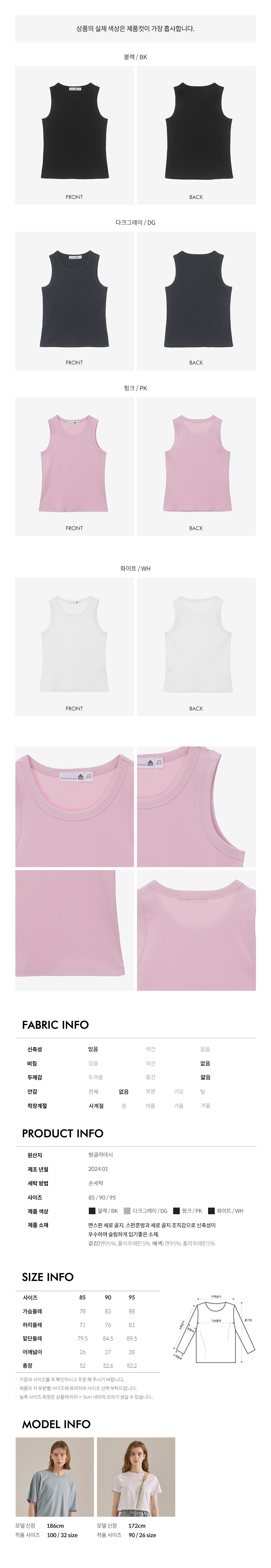 여성 골지 민소매티셔츠 핑크 LYTS3202