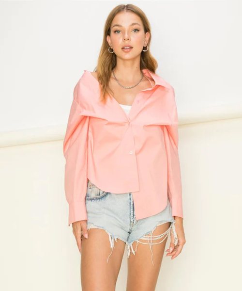 비대칭 버튼 업 탑 셔츠