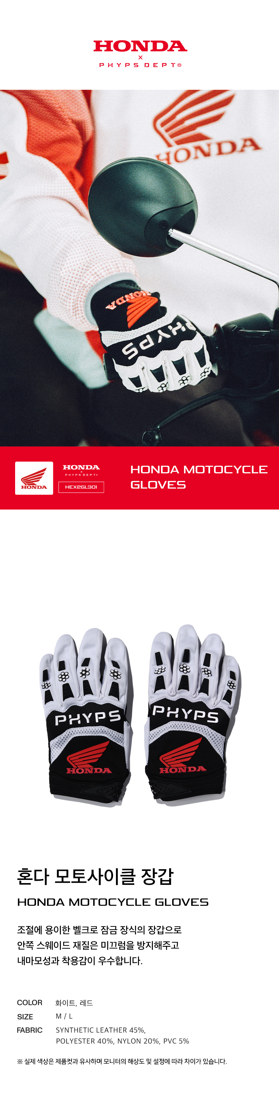 혼다 모터사이클 어패럴(HONDA MOTORCYCLE APPAREL)은 피지컬 디파트먼트(PHYPS)가 혼다 모터사이클(Honda Motorcycle)과 공식 라이선스 계약을 통해 정식으로 전개하는 모터사이클 어패럴 컬렉션 브랜드입니다.