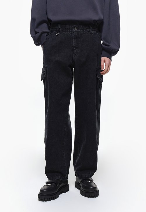 - 카고 와이드 데님 팬츠