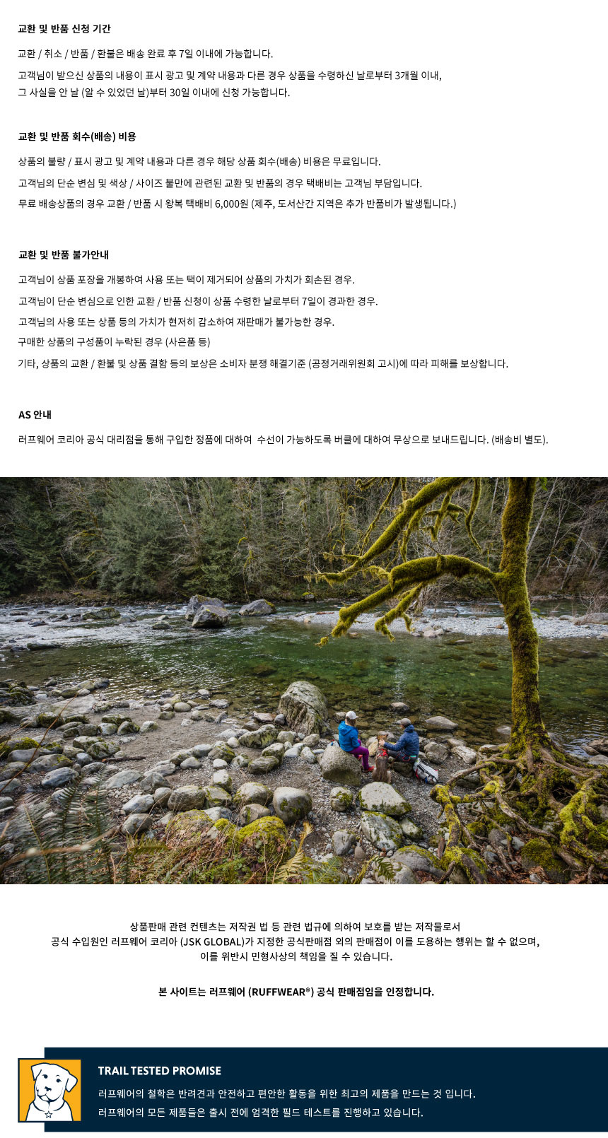 러프웨어(RUFFWEAR)는 그 이름만으로도 애견용품을 대표하는 최고급 브랜드로 미국 오리건주 밴드에 위치했습니다. 러프웨어의 철학은 개와 사람이 동료애를 느끼며 아웃도어 활동을 안전하고 편안하게 할 수 있는 최고급 아웃도어 애견용품을 만드는 것이며, 이를 위해 제품의 디자인, 소재를 그 목적에 맞게 설계/제작하고 있으며 지속적인 제품 개발을 통해 최고의 애견용품 업체로의 위상을 굳건해 하고 있습니다.