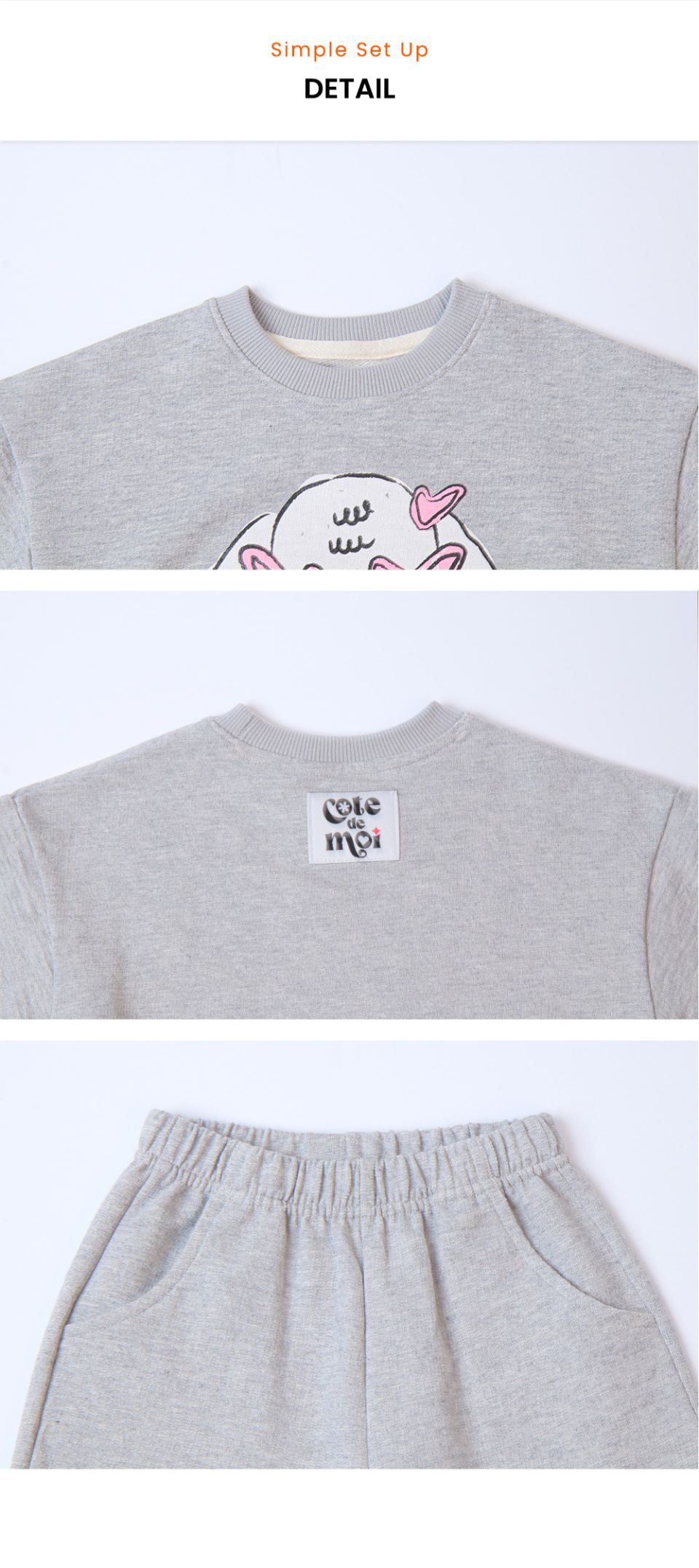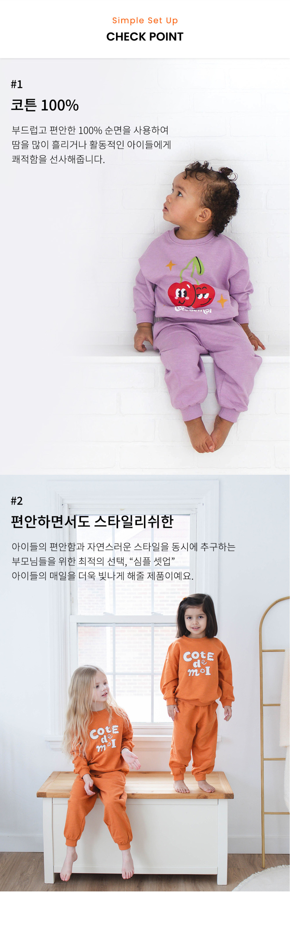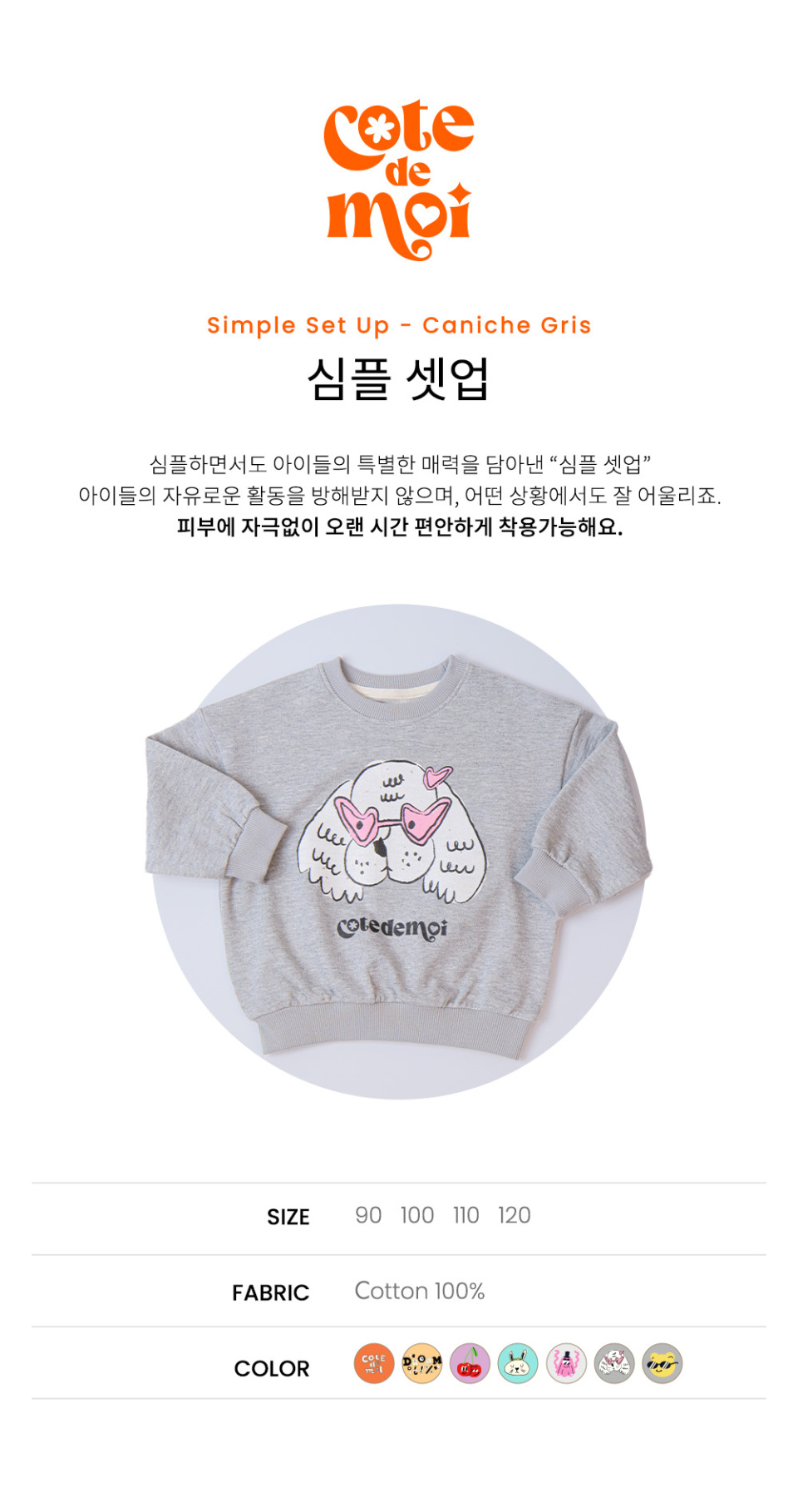 꼬떼드무어(COTE DE MOI)는 '내 옆에'라는 뜻을 담고 있습니다. 아이들과의 모든 순간을 함께하고자 하는 마음을 담아 디자인한 브랜드입니다.