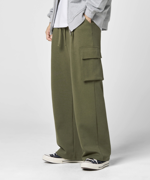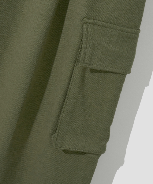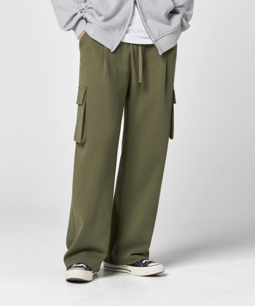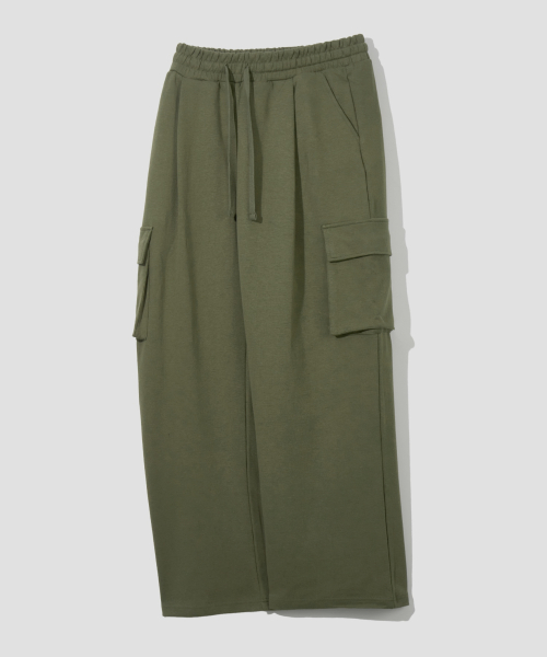 원턱 카고 스웨트 팬츠 [카키]