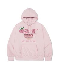 스트로베리 도트 ESCF 로고 콜라주 프린트 후드티 핑크