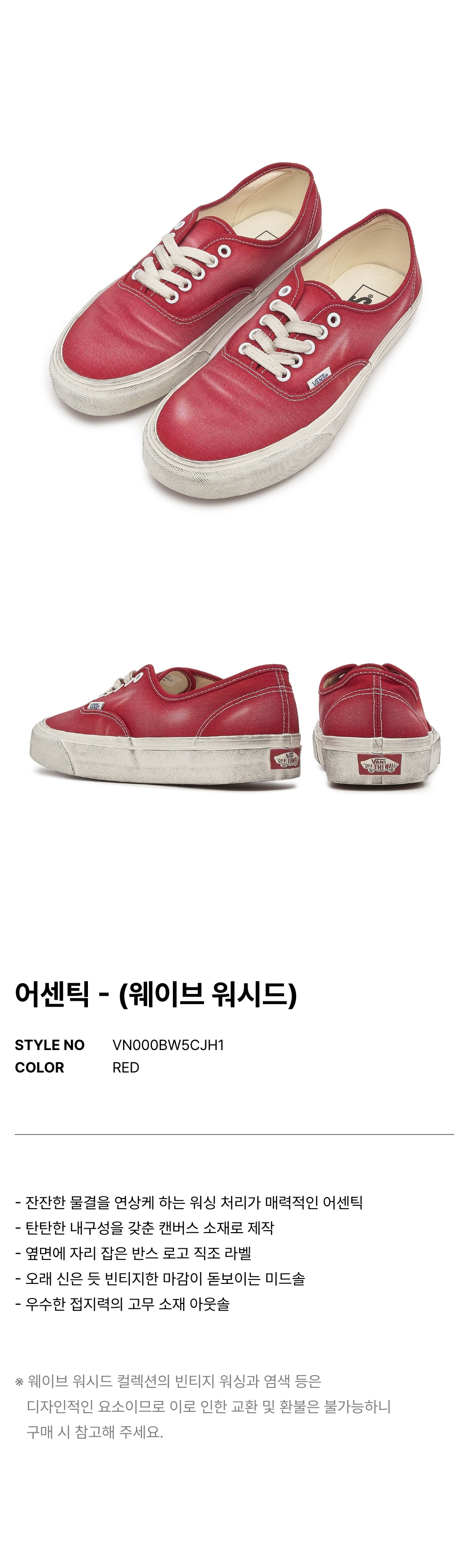 어센틱 - (웨이브 워시드) 레드 / VN000BW5CJH1