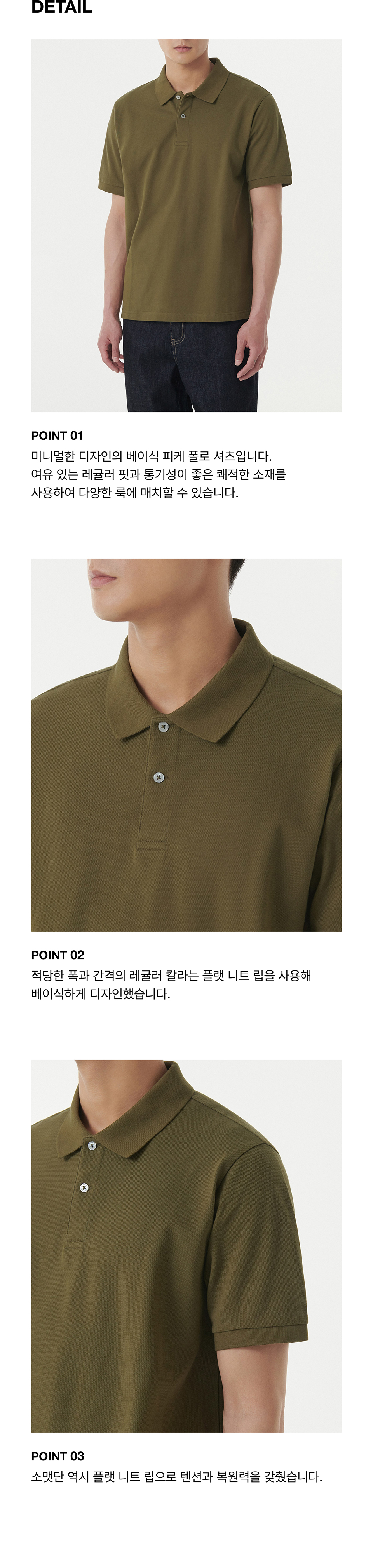 베이식 피케 폴로 셔츠 [올리브]