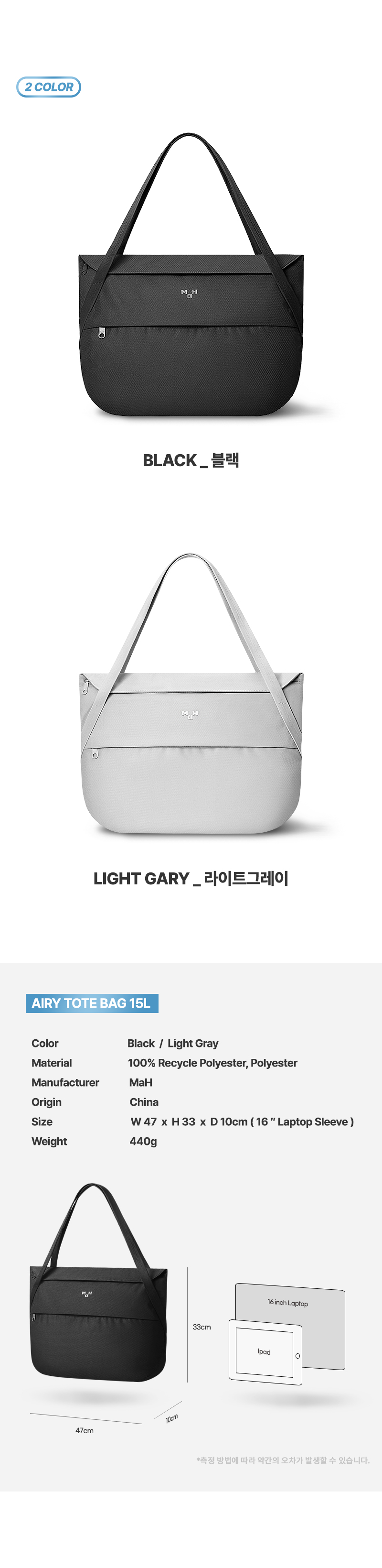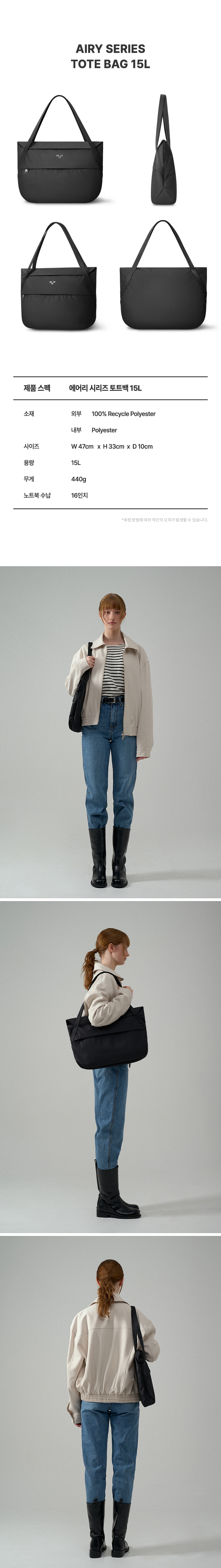 에어리 토트백 데일리 캐주얼 캔버스 백- 블랙