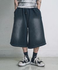 워시드 스웨트 버뮤다팬츠 - 블랙