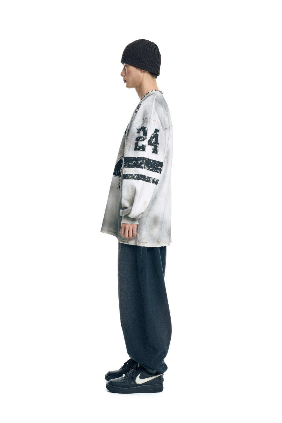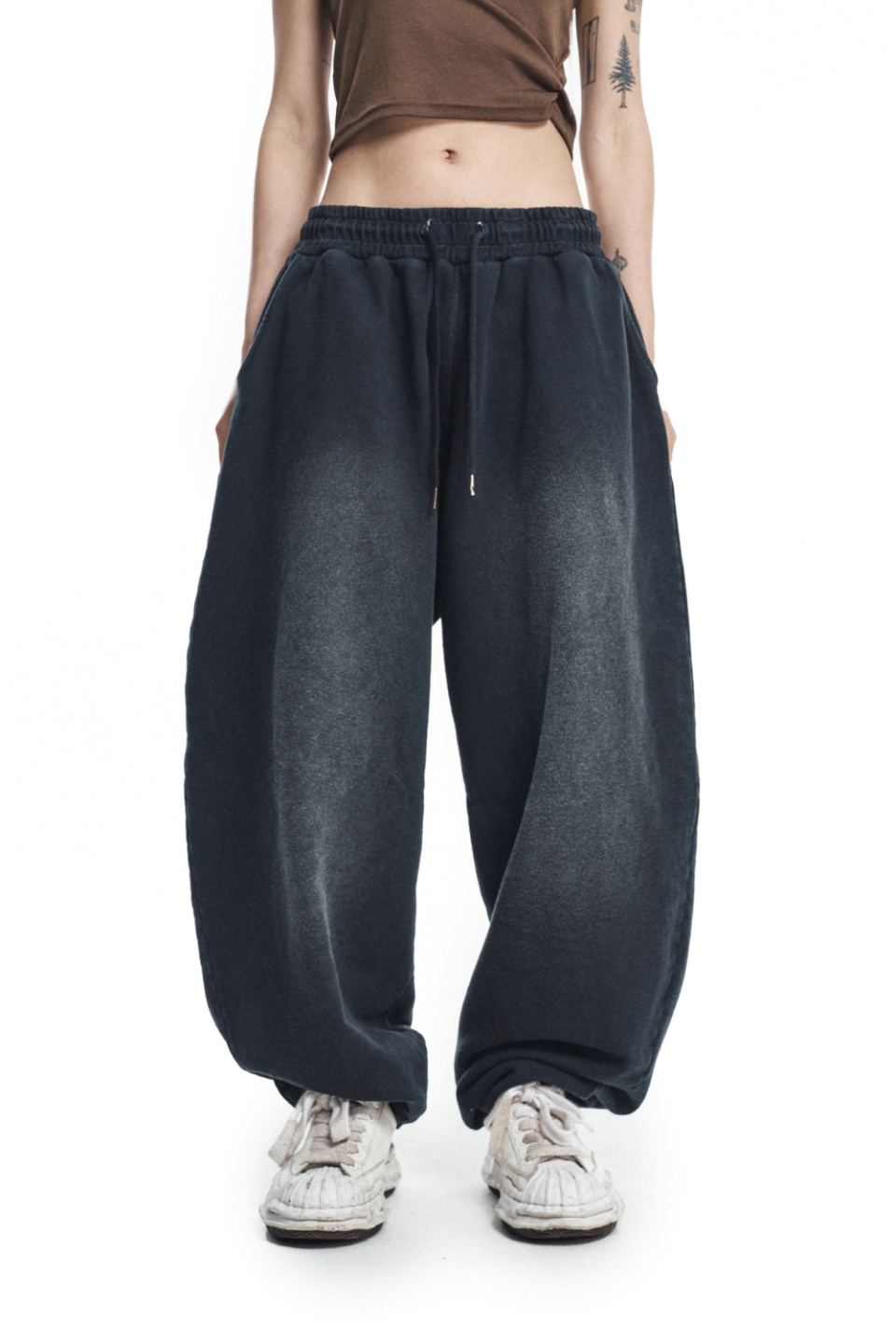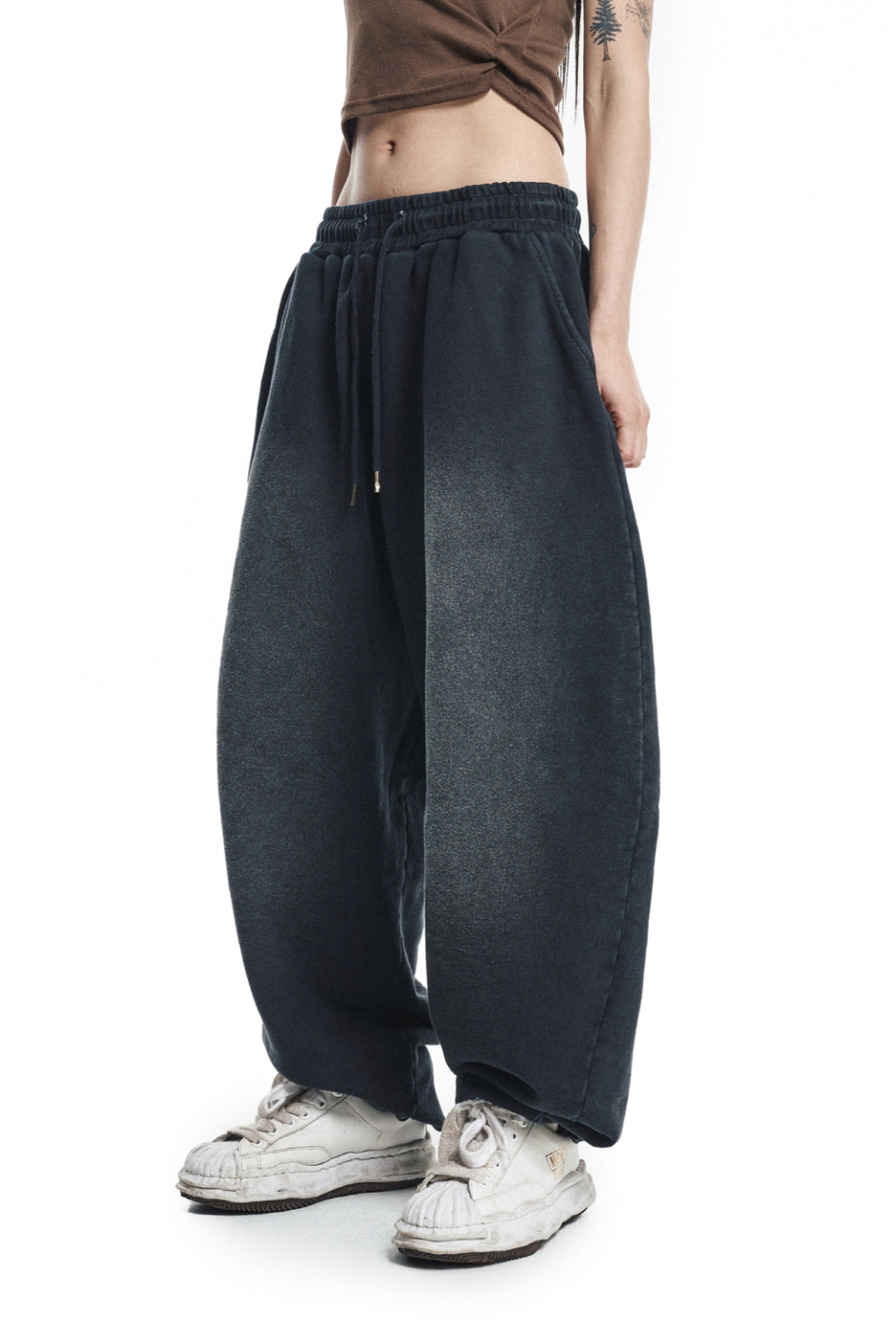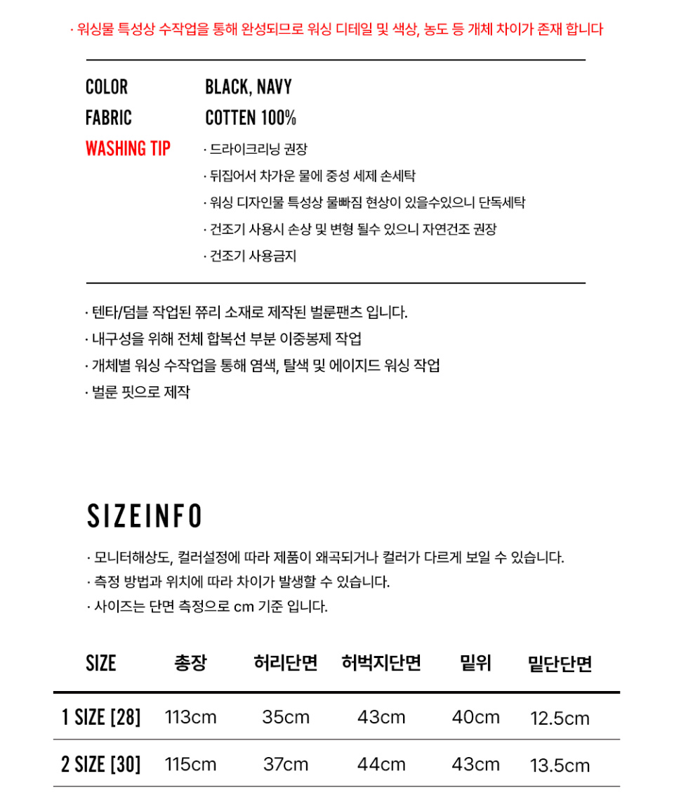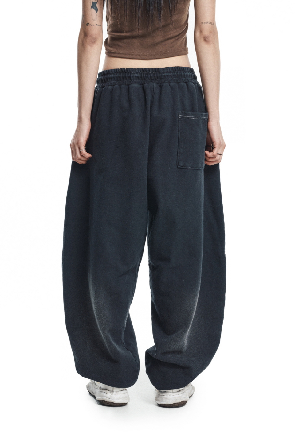 워시드 벌룬 배기 스웨트팬츠 - 블랙