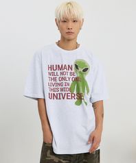 에일리언 슬로건 반팔티셔츠 멜란지화이트