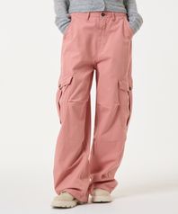 턱주름 와이드 스트링 카고 면팬츠 핑크