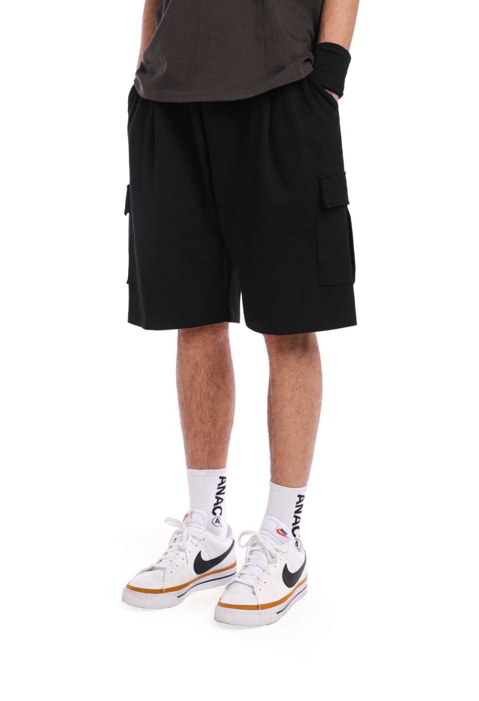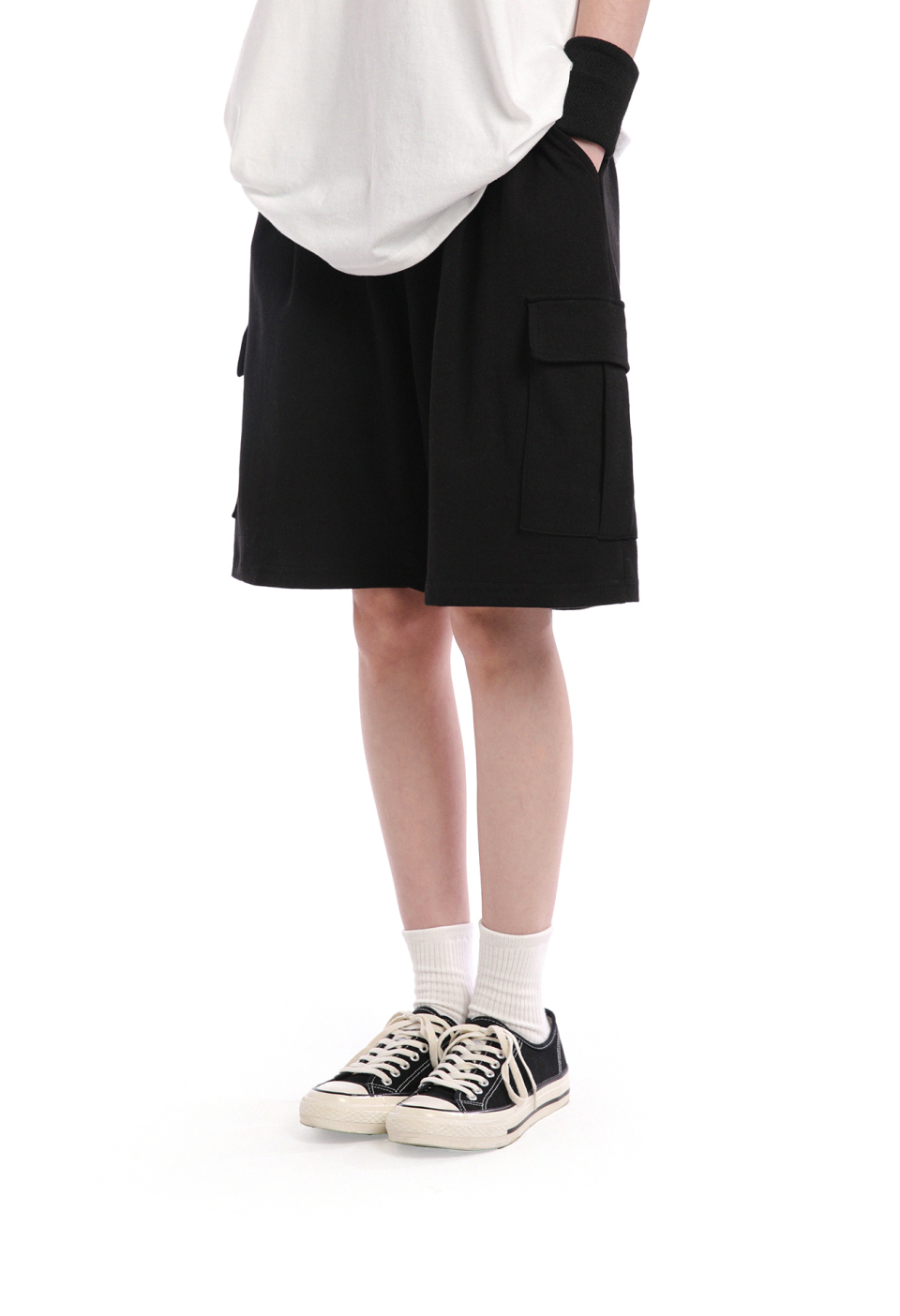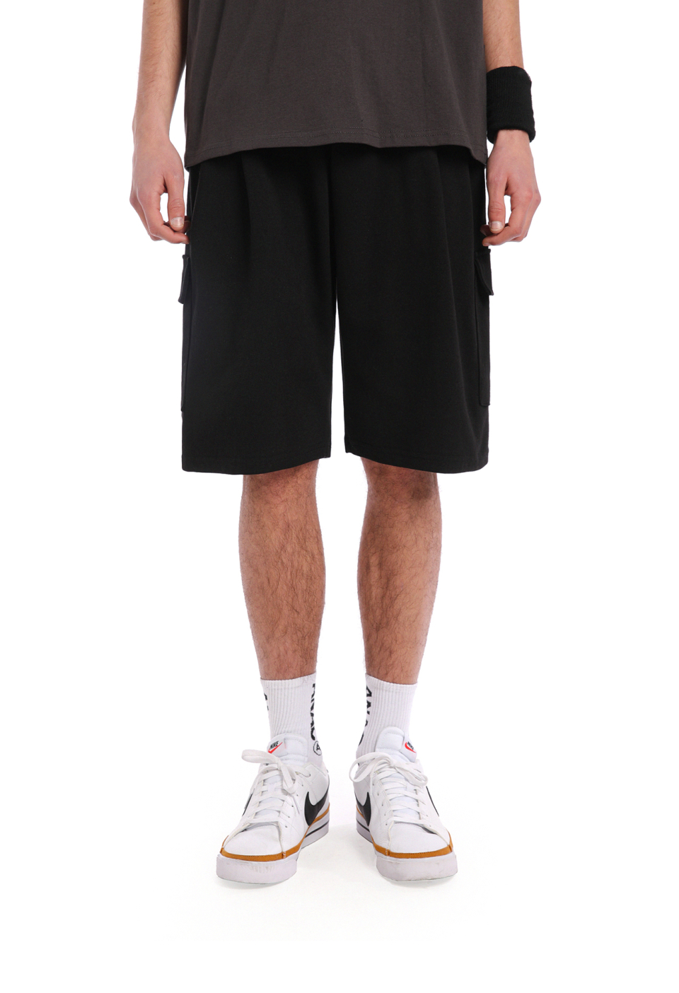 카고 와이드 원턱 버뮤다 쇼츠_블랙
