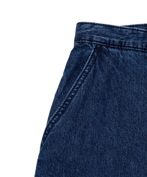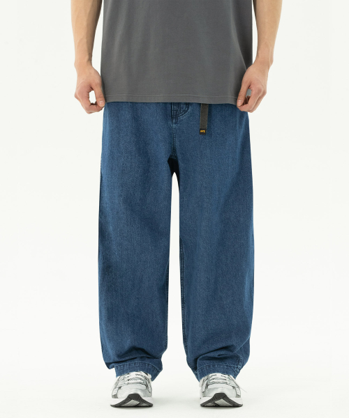 맨 웨빙 벨트 린넨 데님 팬츠 인디고 미듐