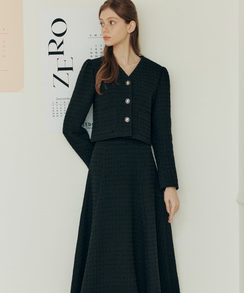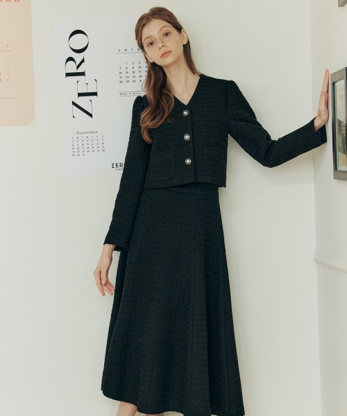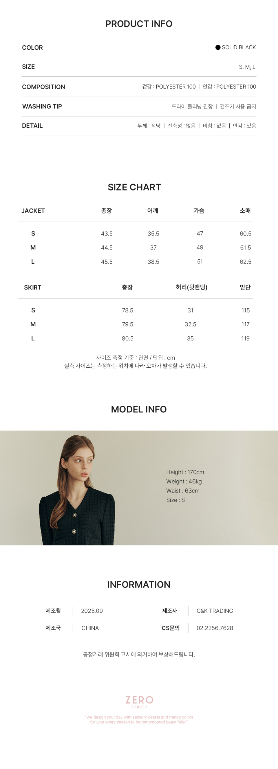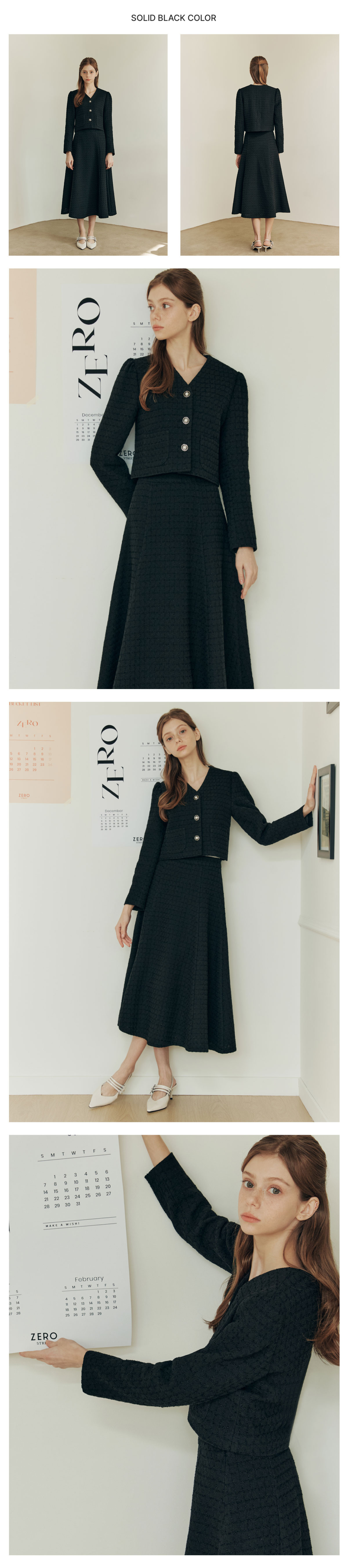 [세트] 브이넥 트위드 자켓 & 스커트 / 솔리드 블랙