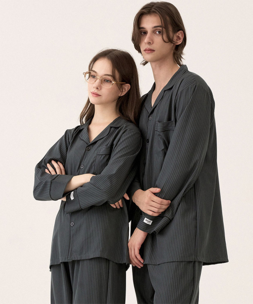 실크핏 웬즈데이 긴팔 커플 잠옷 세트