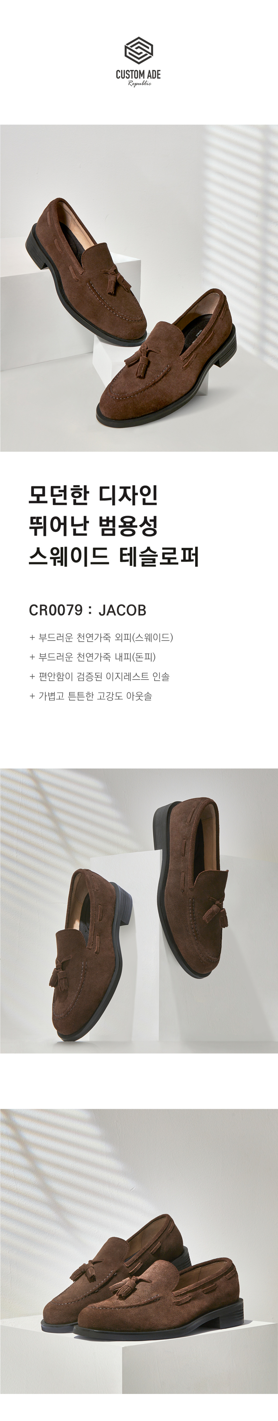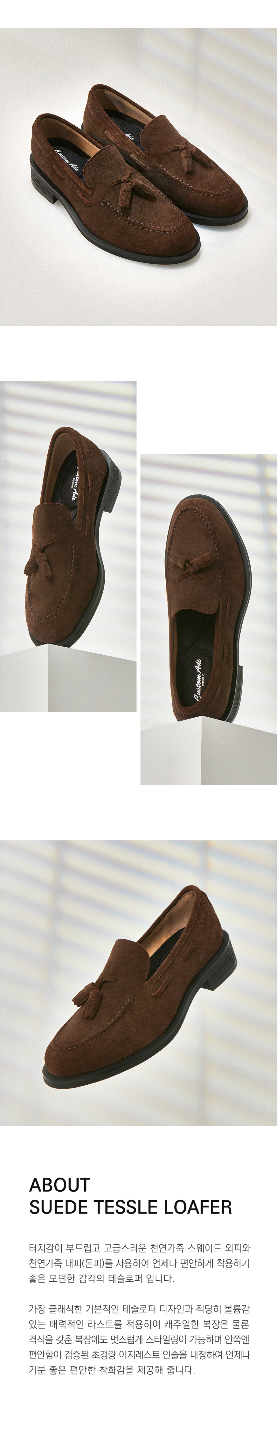 커스텀에이드(CUSTOMADE)는 비즈니스와 캐주얼을 아우르는 베이식한 디자인과 편안한 착화감을 기반으로, 실용적이면서도 높은 품질의 슈즈를 제시합니다. 어떤 룩에도 자연스럽게 어우러지고, 오래도록 함께할 수 있는 가치를 추구하는 브랜드입니다.