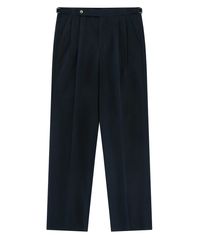 Linen / Cotton Twill adjust 2Pleats relaxed Trousers (Navy)