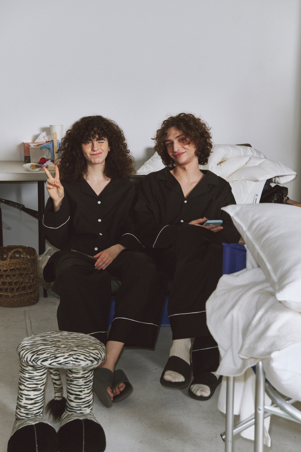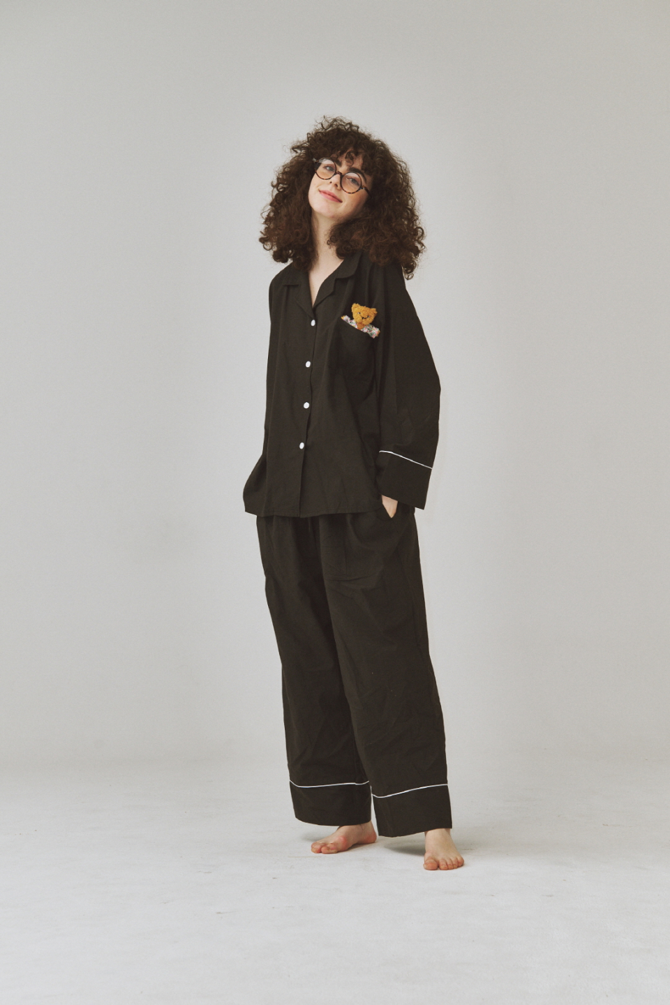 (uni)도미토리 파이프 파자마 블랙