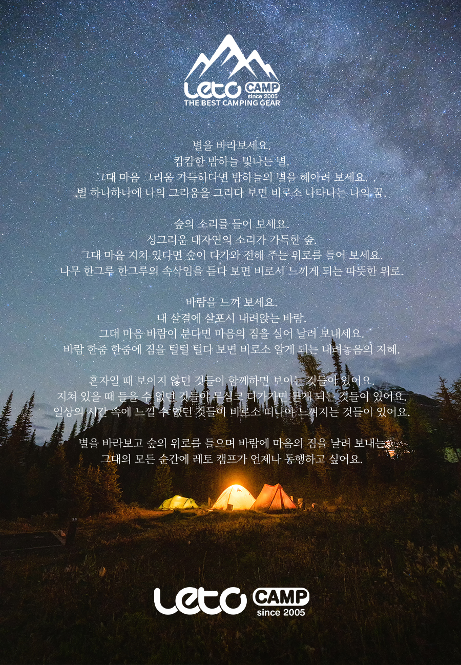 레토(LETO)는 라틴어로 '기쁨'을 뜻합니다. 고객에게 기쁨이 되고자 하는 기업 이념을 담고 있습니다. 좋은 제품을 좋은 가격으로 판매하여 고객에게 기쁨을 드리고자 합니다.