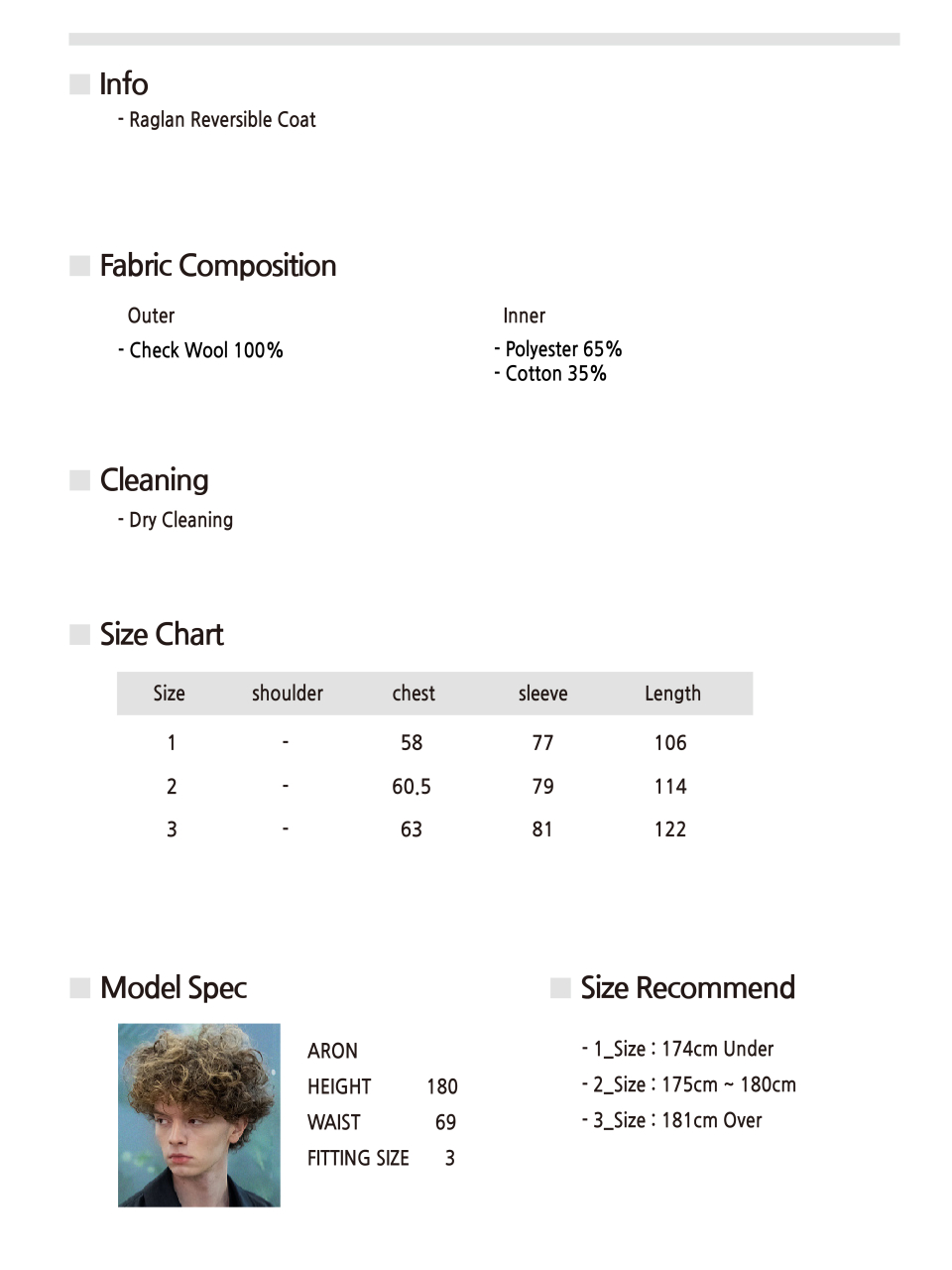 Model is (180cm / 62kg) wearing size 3_Size