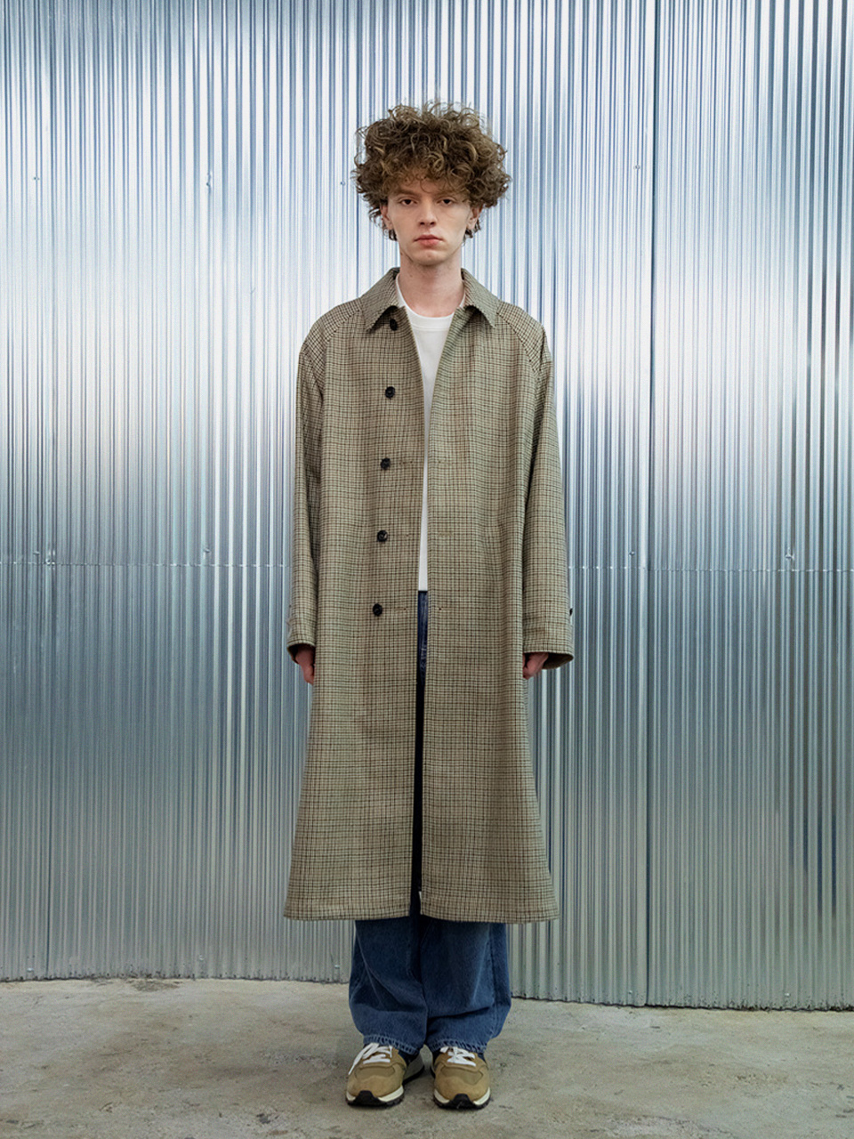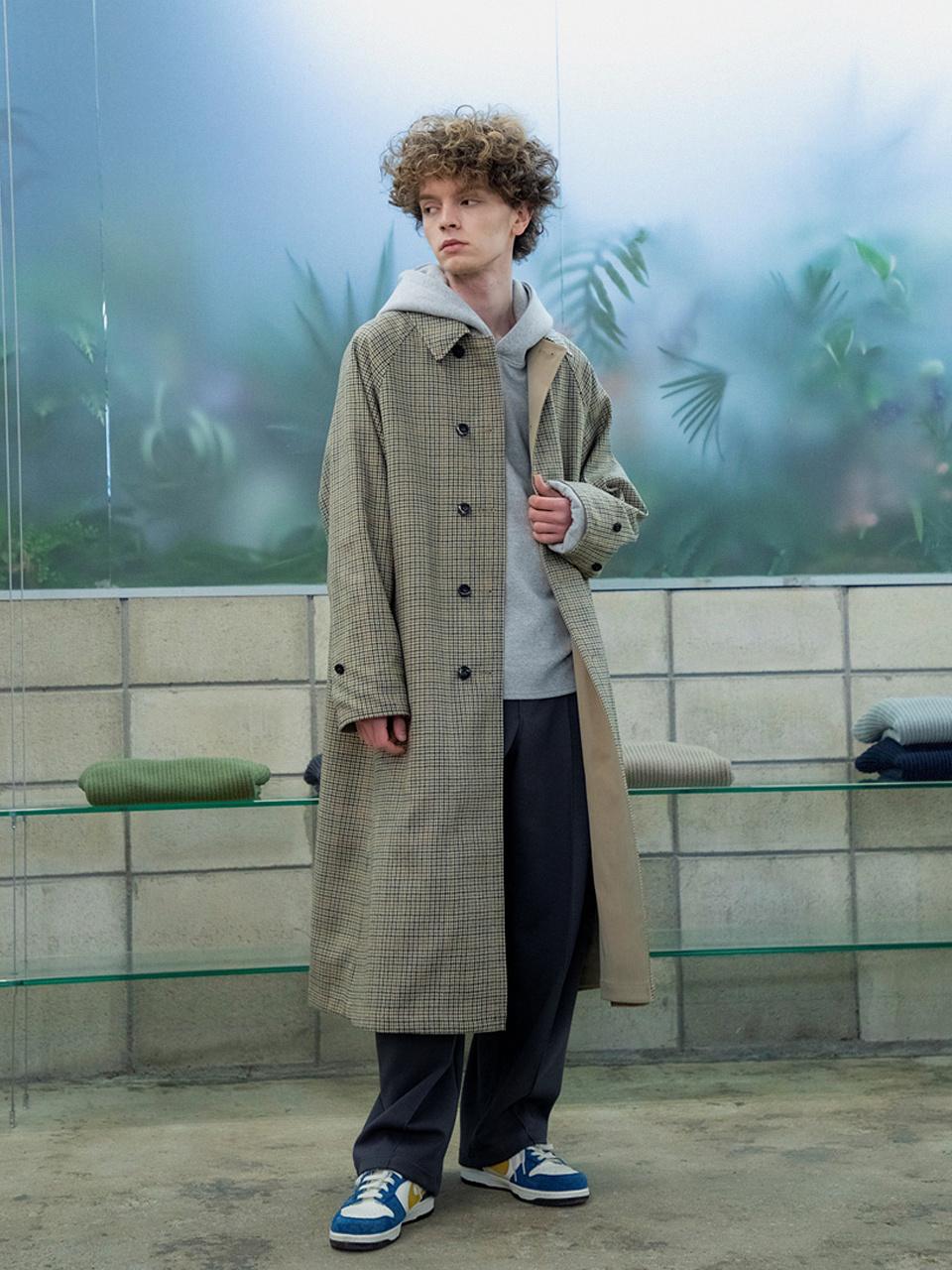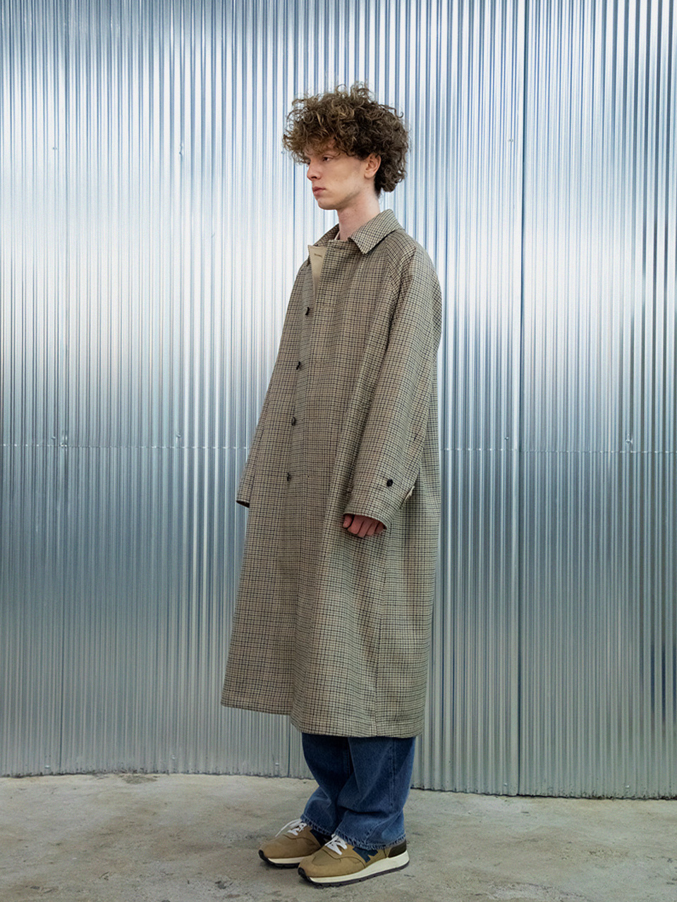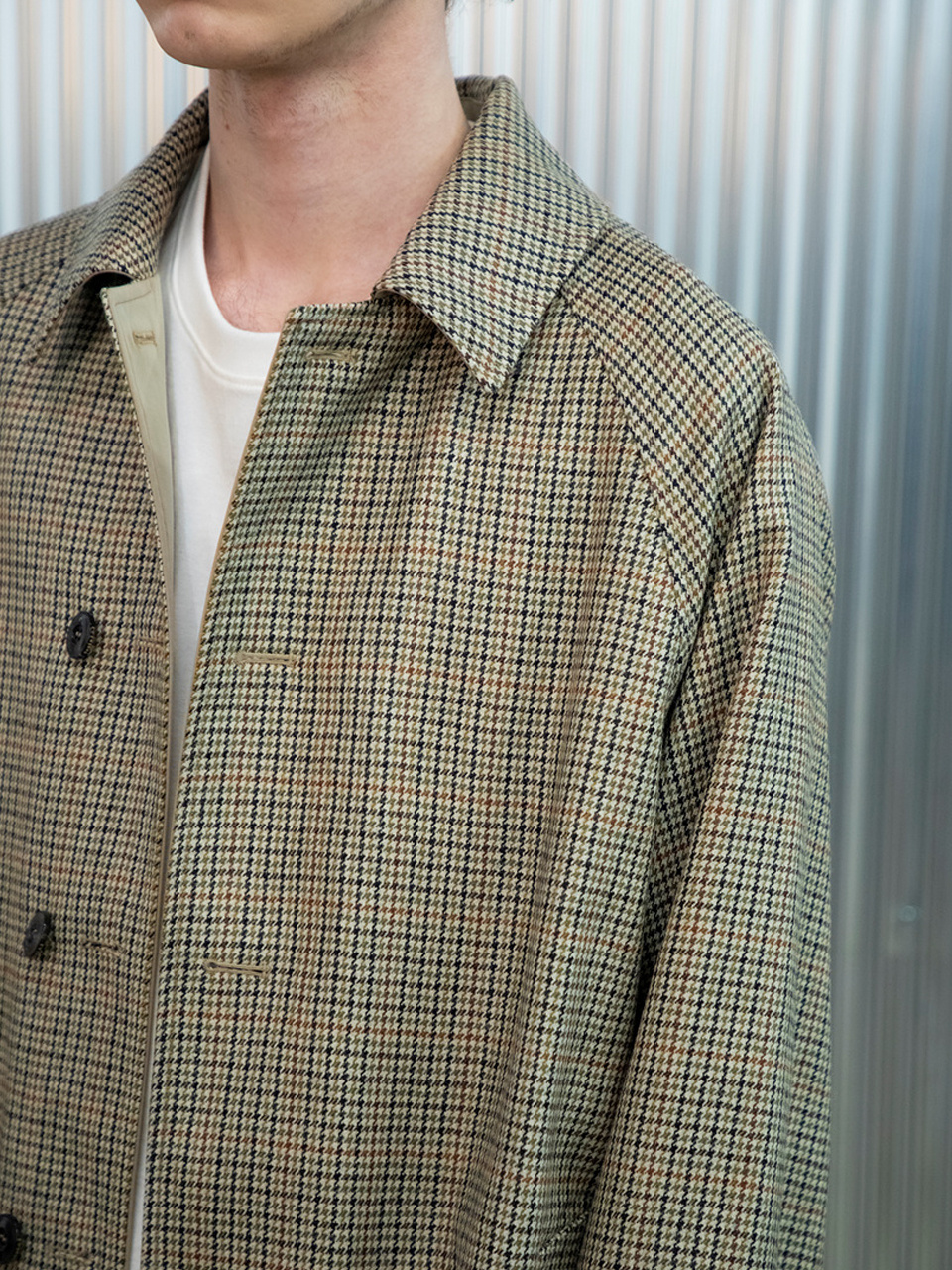래글런 리버시블 코트 [체크 X 솔리드]