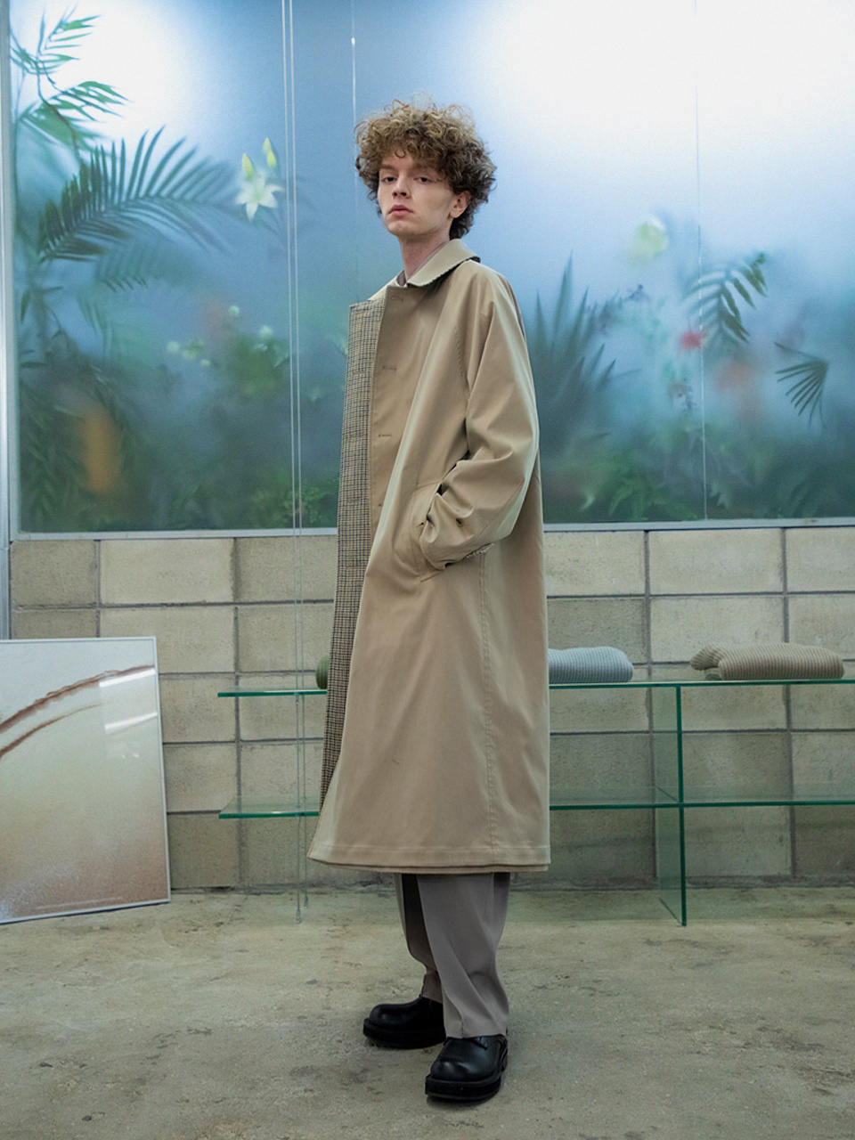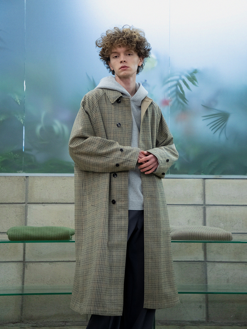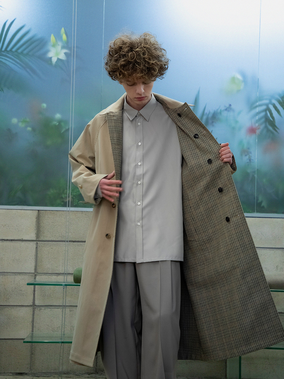 래글런 리버시블 코트 [체크 X 솔리드]