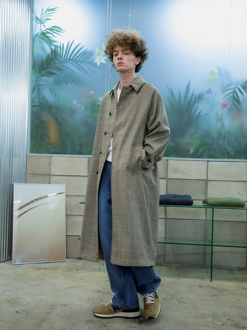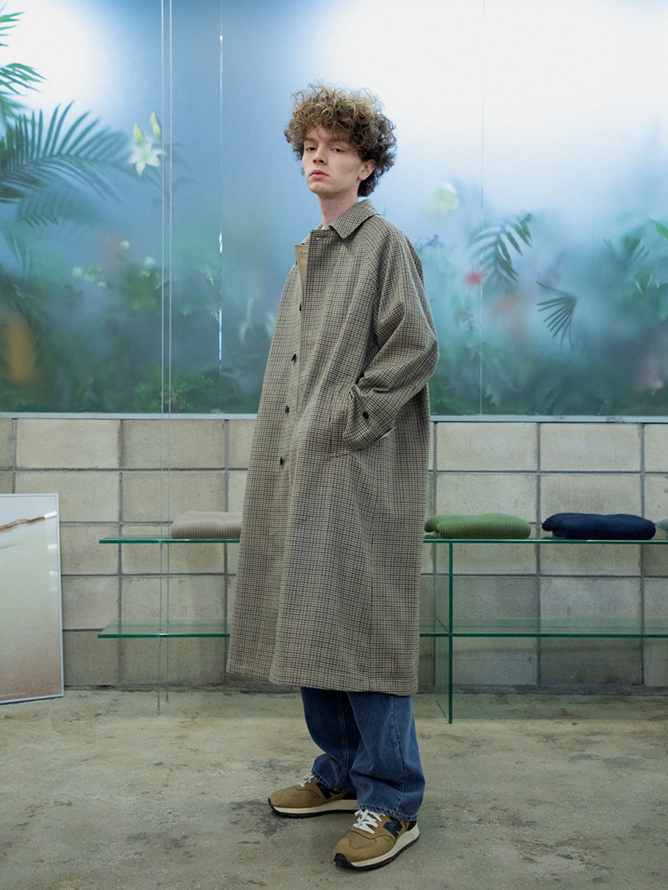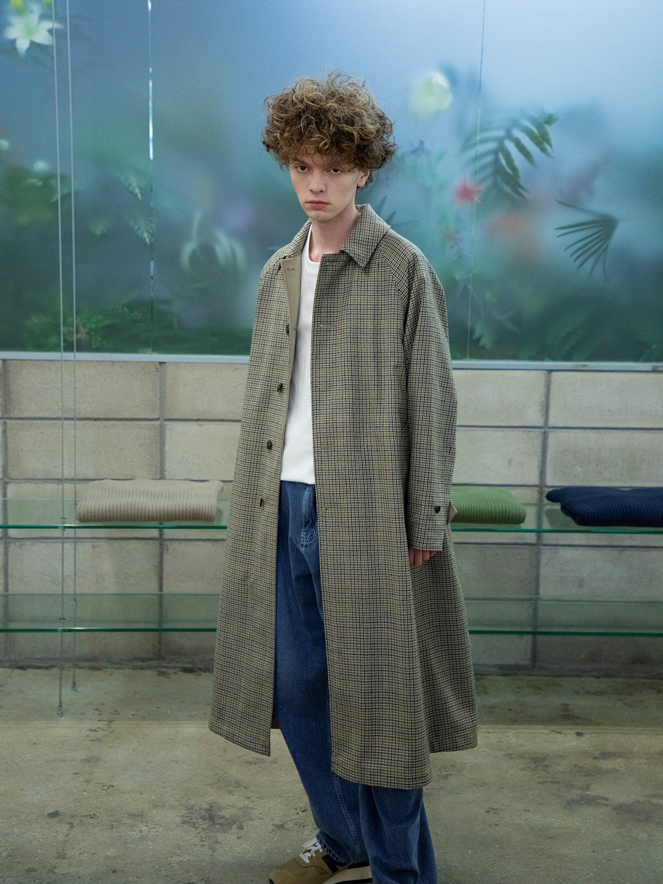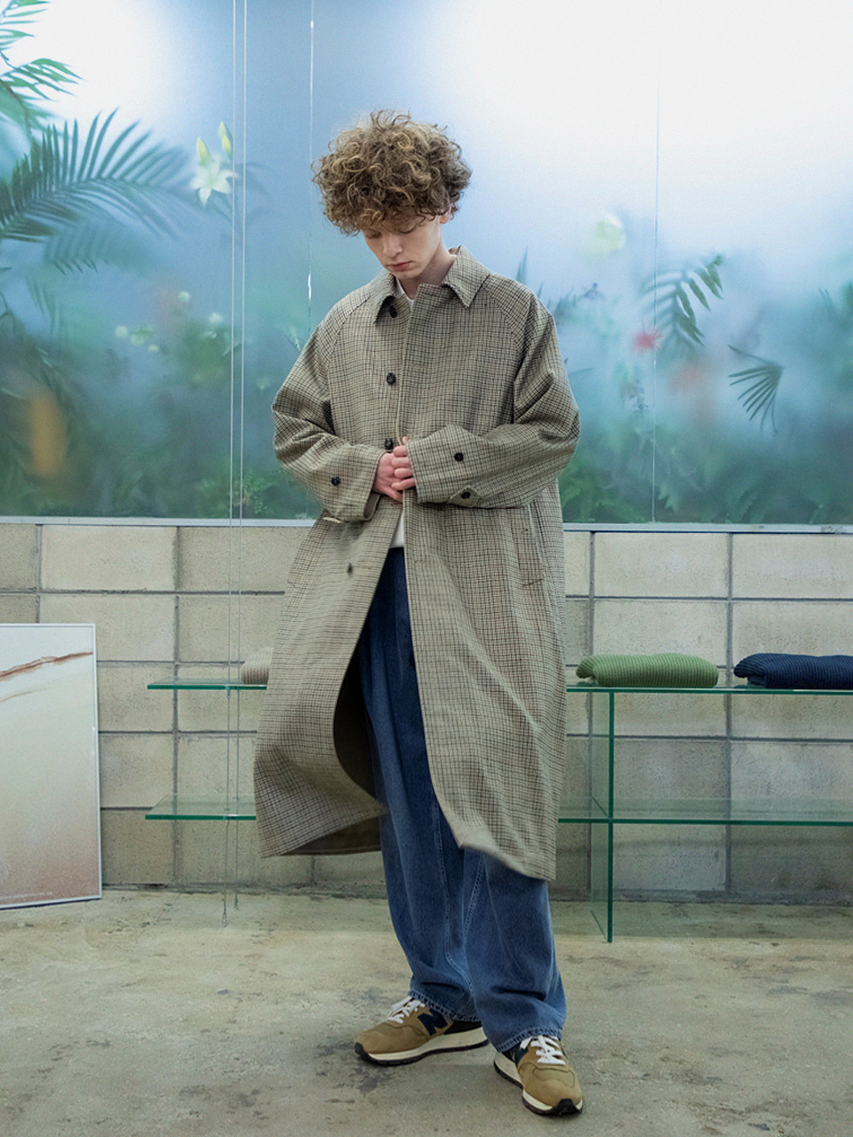 래글런 리버시블 코트 [체크 X 솔리드]