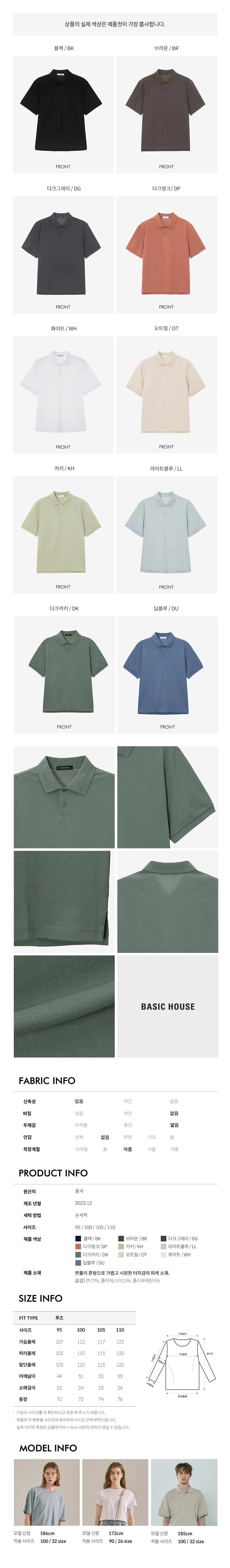 UNI 세미오버핏 피케 폴로티 다크카키 LYTS3104