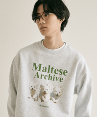 말티즈 아카이브 맨투맨 멜란지화이트