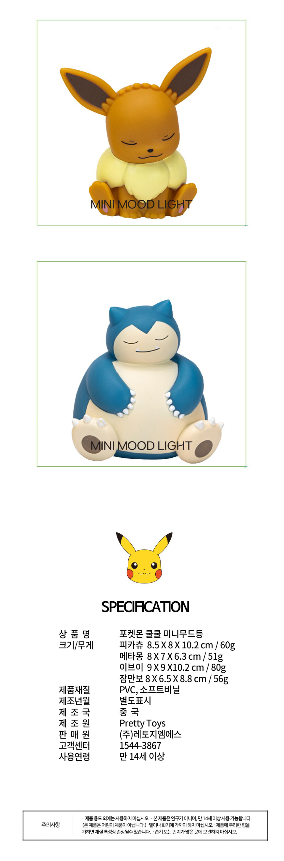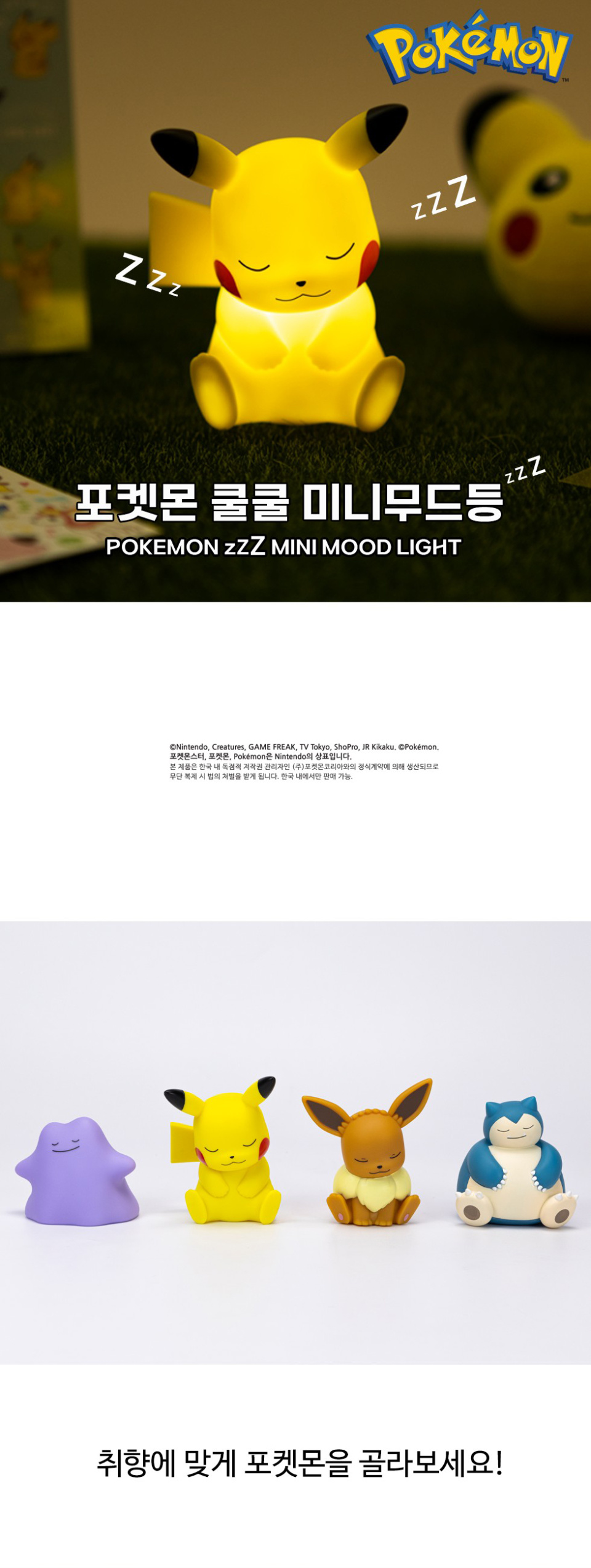 포켓몬 피카츄 잠만보 메타몽 이브이 무드등