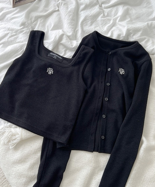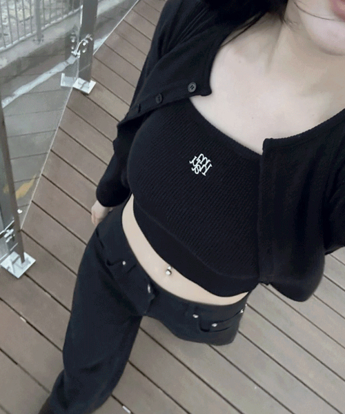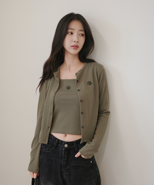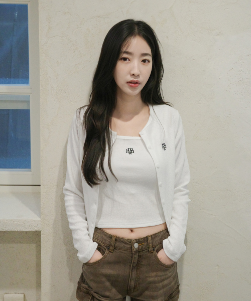 [SET] 로고 슬림핏 니트 가디건 슬리브리스 [7color]