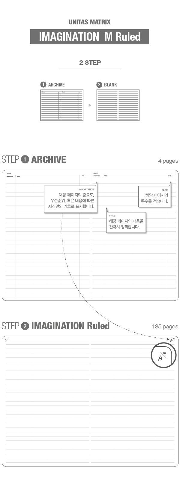 그래서 이미지네이션의 라인 노트와 무지 노트에는 페이지 번호가 있습니다.