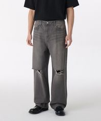 디스트로이드 니 와이드 데님 팬츠 [그레이]