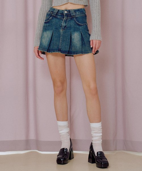 니키타 데님 플리츠 스커트 팬츠 [DEEP DENIM]