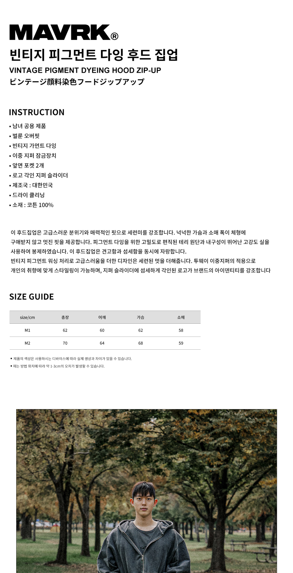빈티지 피그먼트다잉 후드 집업 [2colors]