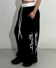 오비 배색 썬더 로고 팬츠 블랙/화이트