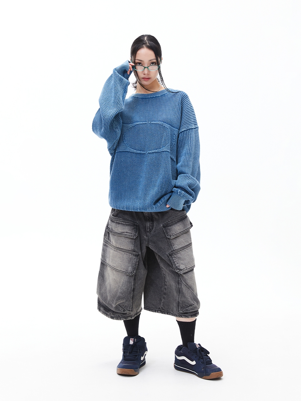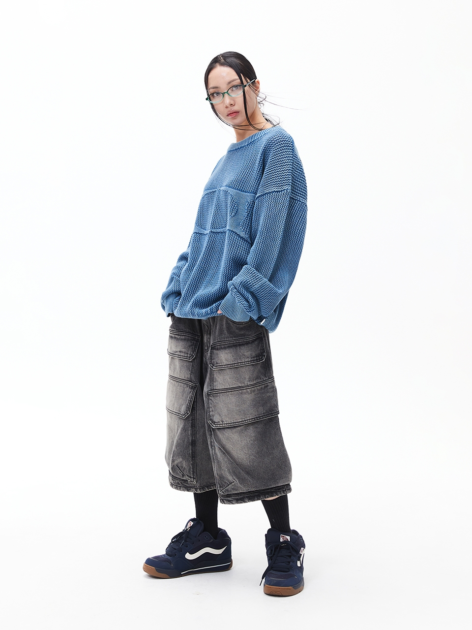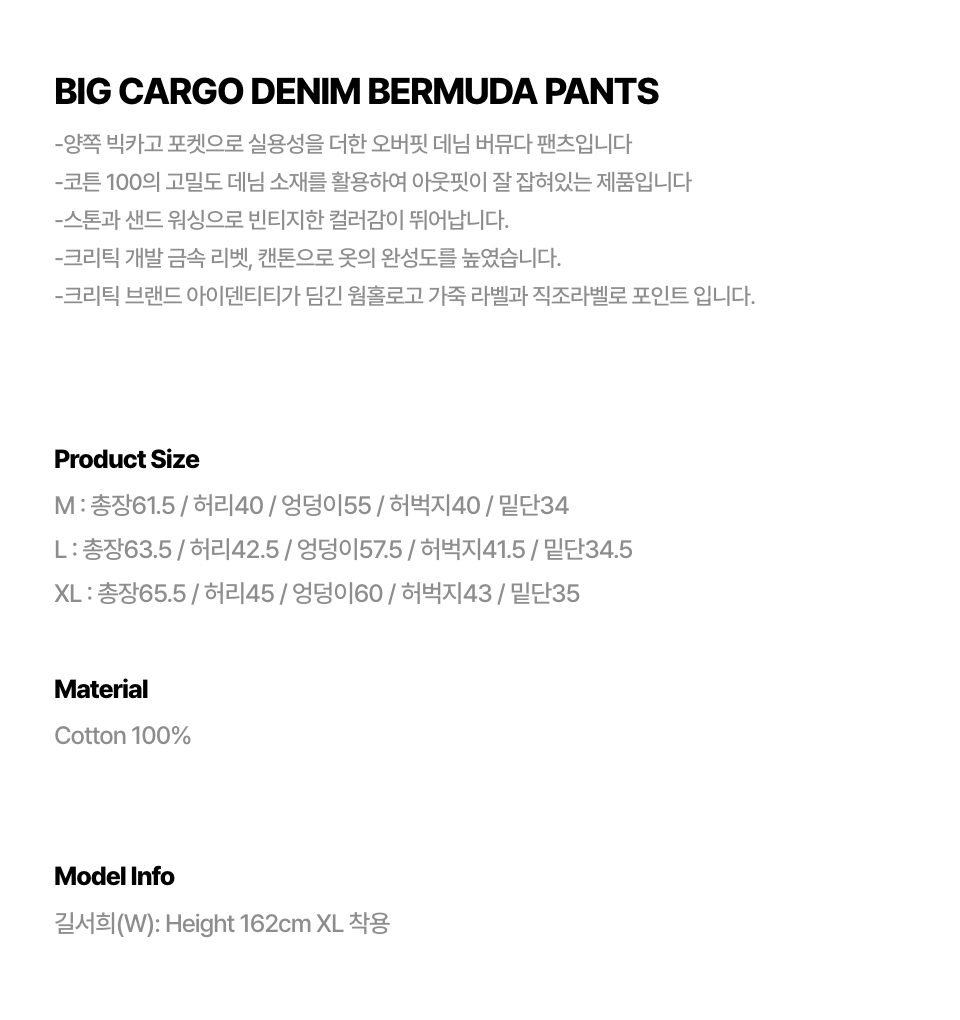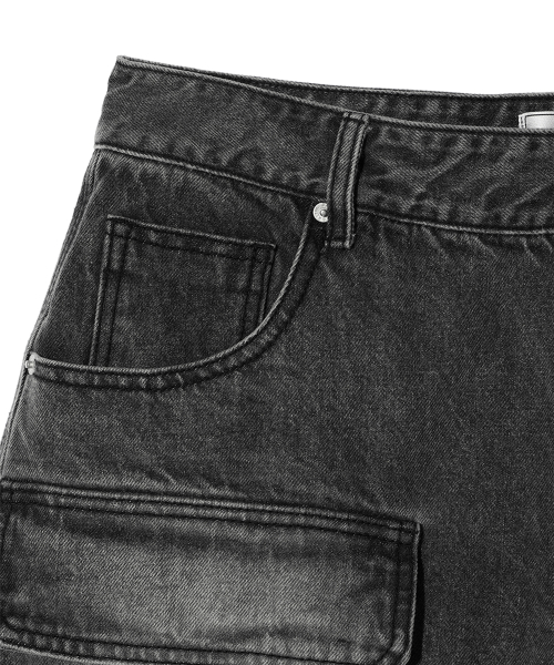 데님 버뮤다 팬츠 [워시드 블랙]