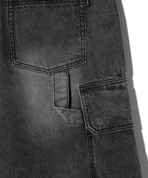 웨이비 커브드 와이드 데님 팬츠 [BLACK]